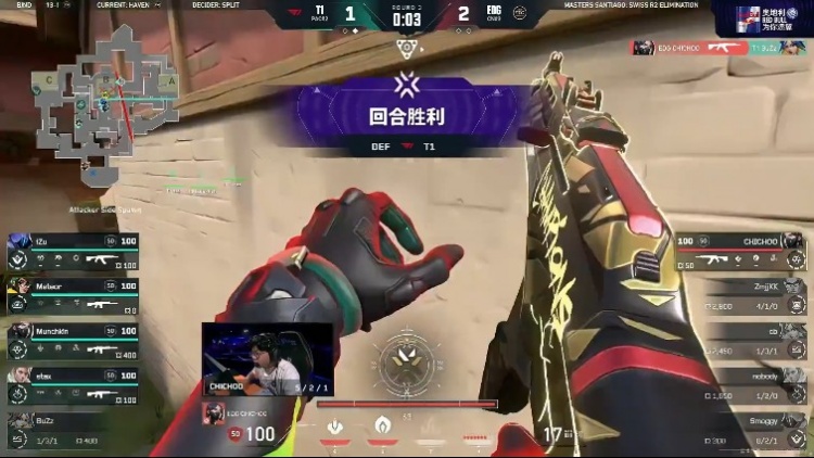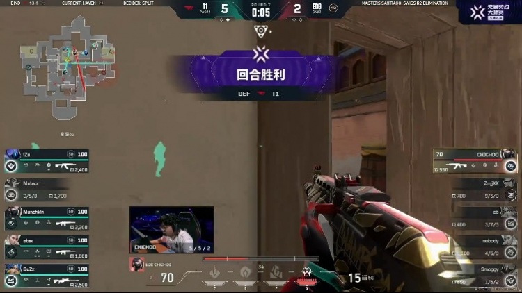 第十五局:T1开局选择默认拿信息,随后T1直接转到A点进点下包,T1面对奖励局成功拿下一分!