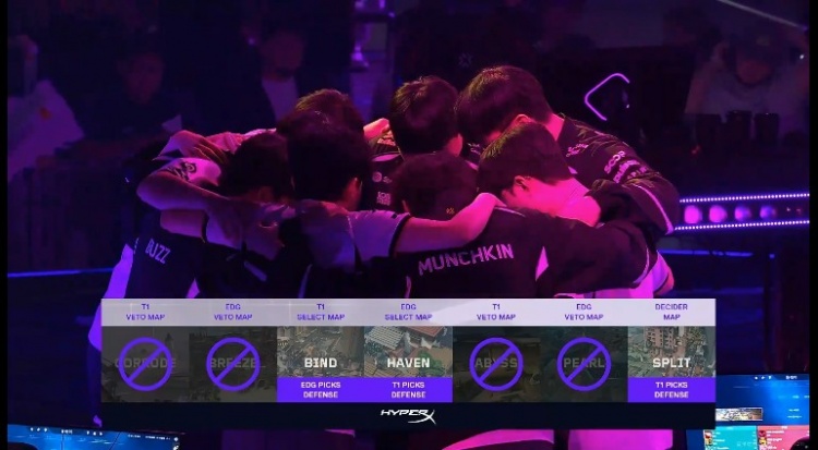第八局:开局T1大狙直接收下两人,随后EDG四人选择提速进B点但是被接住,T1拿下一分!