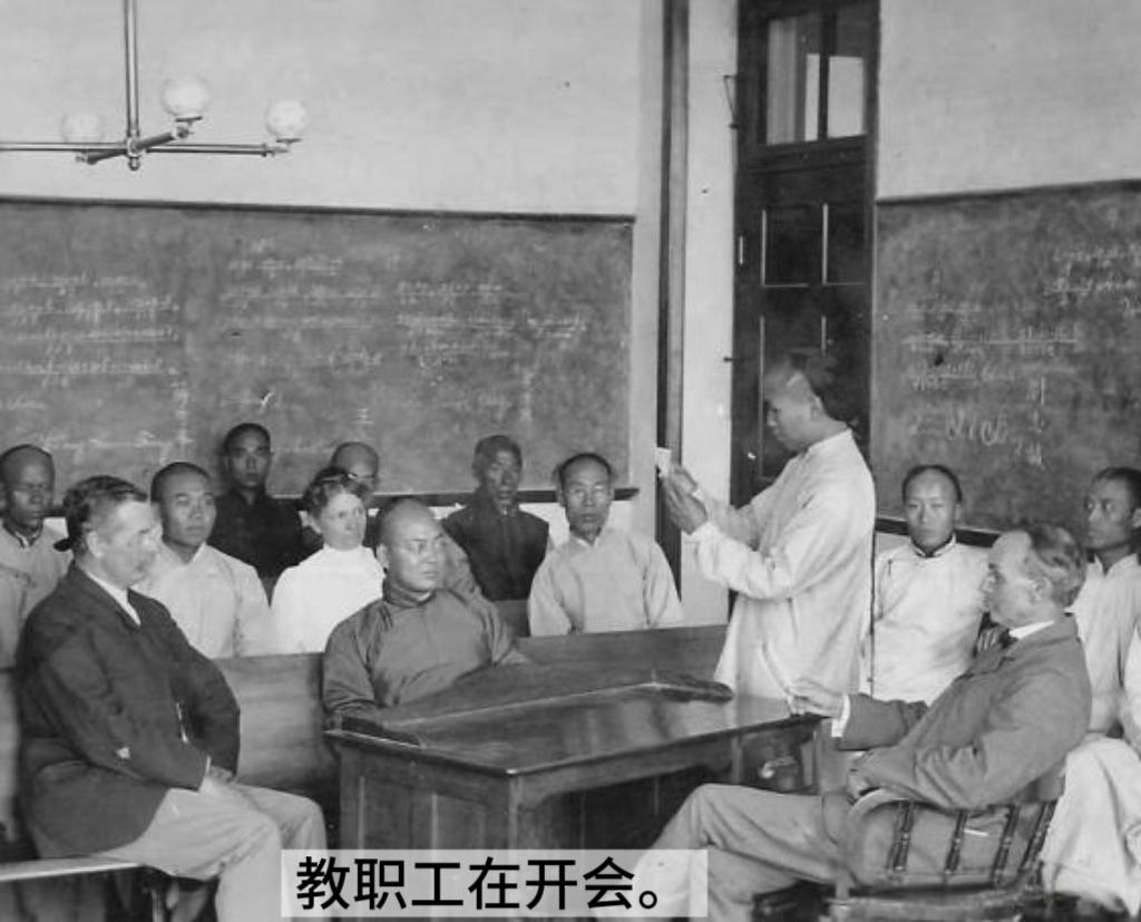 这些珍贵的老照片记录了汇文大学堂师生上课、开会、就餐、在图书馆自习等多种场景,再现了100多年前大学生的校园生活。据了解,这所大学除了中文课程,其他课程全用外语讲授。