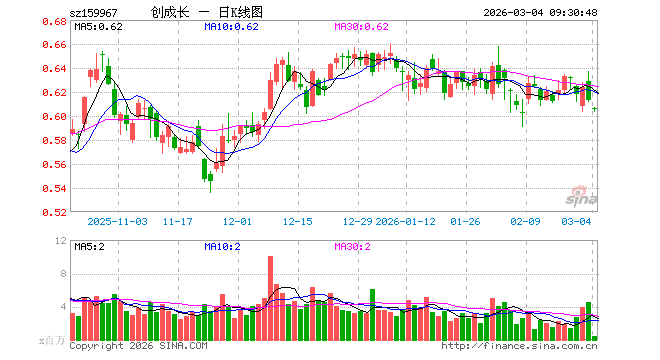 3月4日,创业板成长ETF(159967)开盘跌1.14%,报0.606元。创业板成长ETF(159967)重仓股方面,中际旭创开盘跌1.73%,新易盛跌1.20%,宁德时代跌0.86%,阳光电源跌1.75%,胜宏科技跌1.37%,东方财富跌0.97%,先导智能跌1.48%,天孚通信跌1.87%,长芯博创跌3.46%,同花顺跌1.42%。