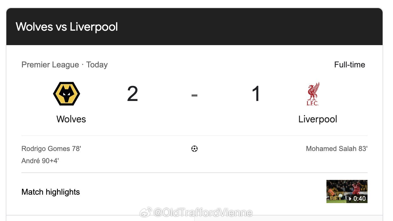 谢了狼队狼队2比1利物浦