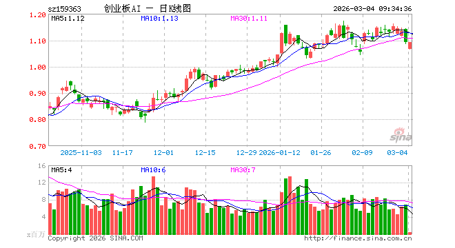 3月4日,创业板人工智能ETF华宝(159363)开盘跌2.38%,报1.065元。创业板人工智能ETF华宝(159363)重仓股方面,中际旭创开盘跌1.73%,新易盛跌1.20%,天孚通信跌1.87%,蓝色光标跌1.71%,协创数据跌2.17%,同花顺跌1.42%,润和软件跌1.30%,北京君正涨1.40%,润泽科技跌3.48%,昆仑万维跌2.29%。