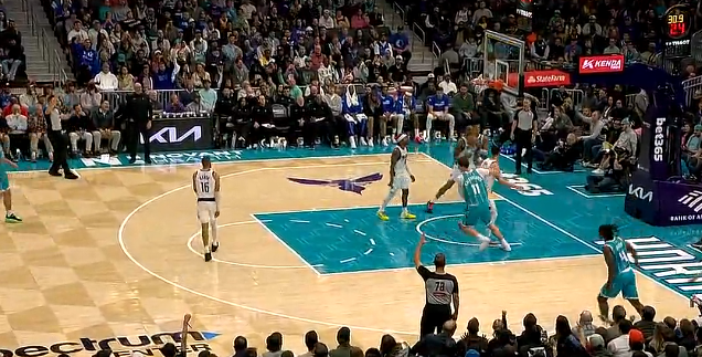 比赛的第三节,西恩-詹姆斯底角三分命中,黄蜂领先独行侠到22分分差。