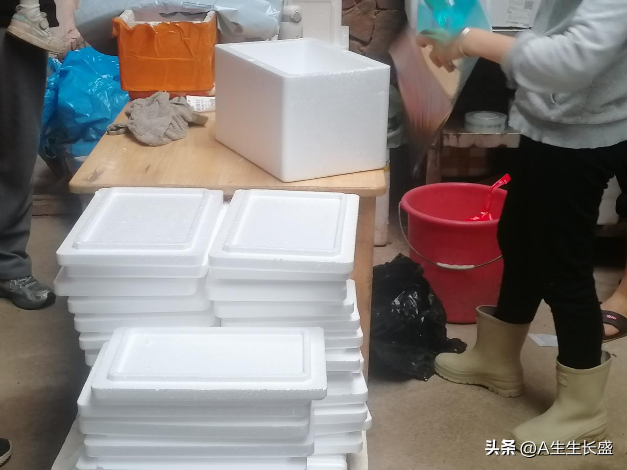 集卡领红包观赏鱼打包进行中,有几十单,打包真是里三层外三层,包裹里面通常才几条小鱼。一条小鱼苗经过养殖,养到一定程度就出售,出售方式线上线下同步进行,经过多道操作,便宜的小幼鱼价值倍增,一条要几十元,价值翻了几倍几十倍!