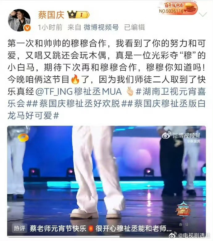 蔡国庆穆祉丞互关穆祉丞感谢蔡国庆的夸奖穆祉丞很高兴也很荣幸能跟蔡国庆合作