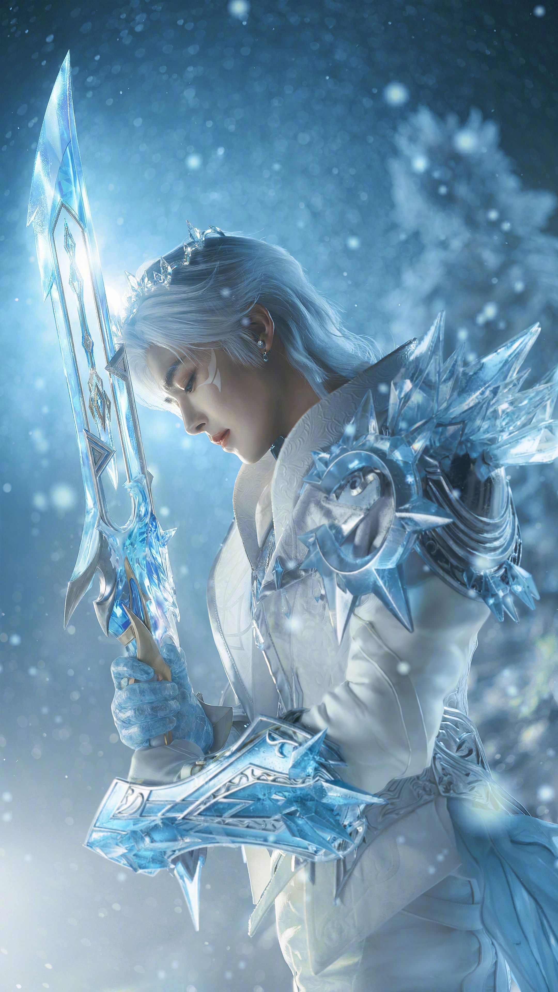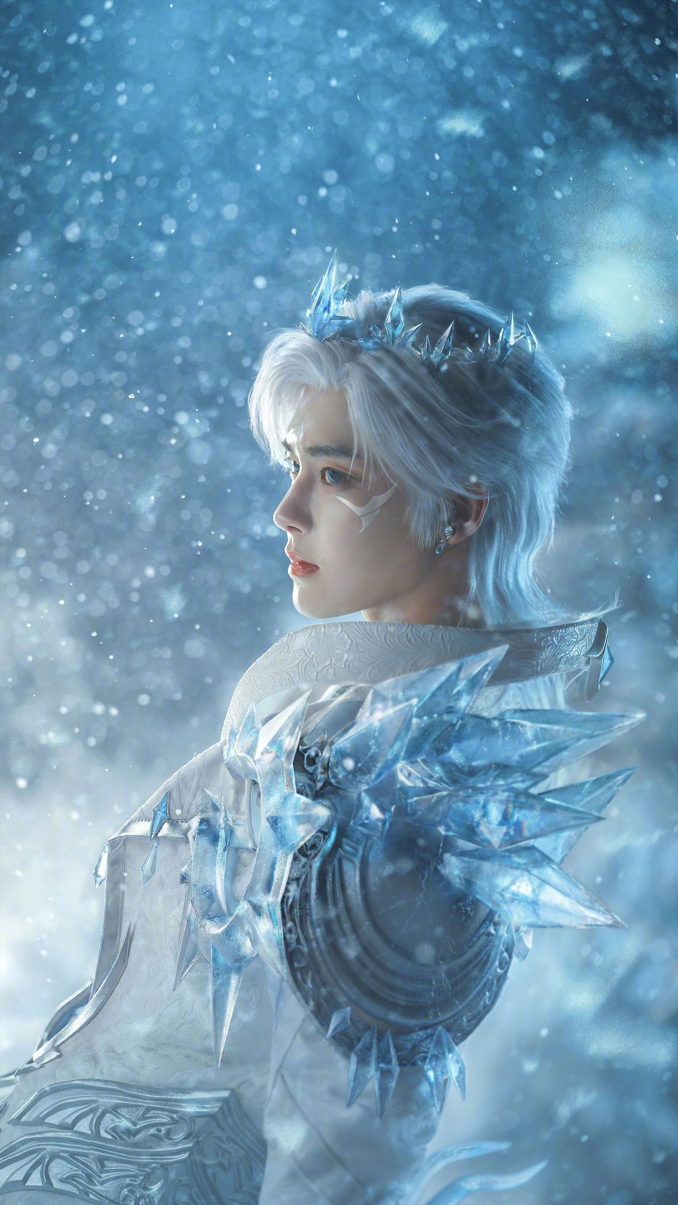 建议侯明昊锁死蓝白色调,真的是太美了,和平精英还是会挑人的,侯明昊这身冰系铠甲狼王造型,确实挺适合他。那种清冷又凌厉的气质,和角色设定很贴合。侯明昊和平精英霜狼大使