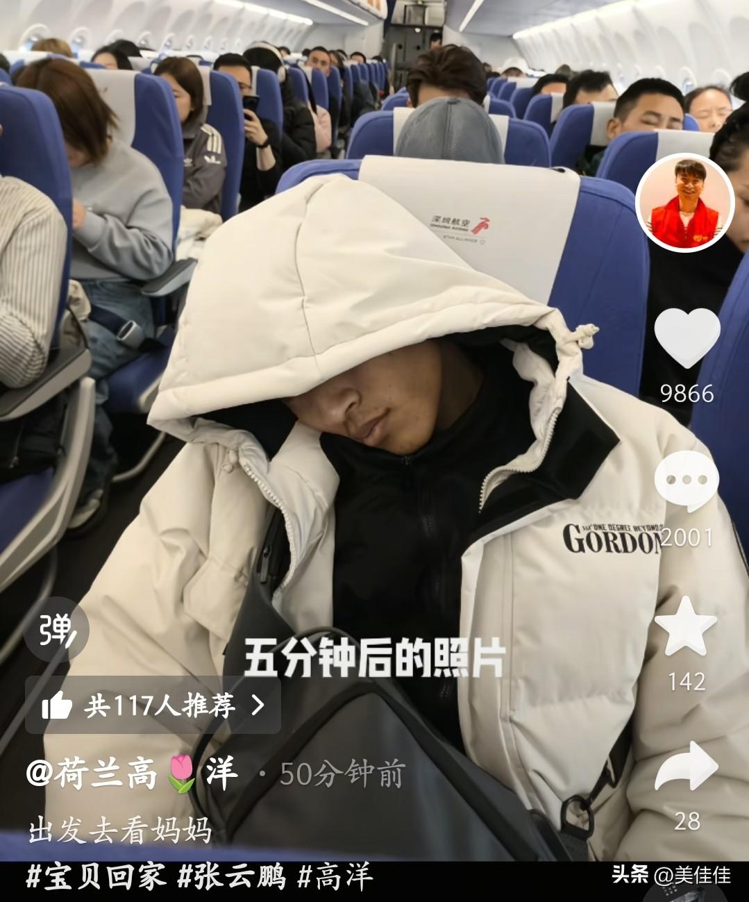 刚刚高洋分享了陪张云鹏去看妈妈路上的事,高洋说张云鹏原本在飞机上不睡觉,可这次上飞机不到5分钟就睡着了。 张云鹏因为语言的原因,和高洋在一起时还是最开心的。 他们还一起在地铁里比✌🏻,一起去吃美食,张云鹏看起来比刚回国时胖了点。高洋真的是张云鹏的一束光!