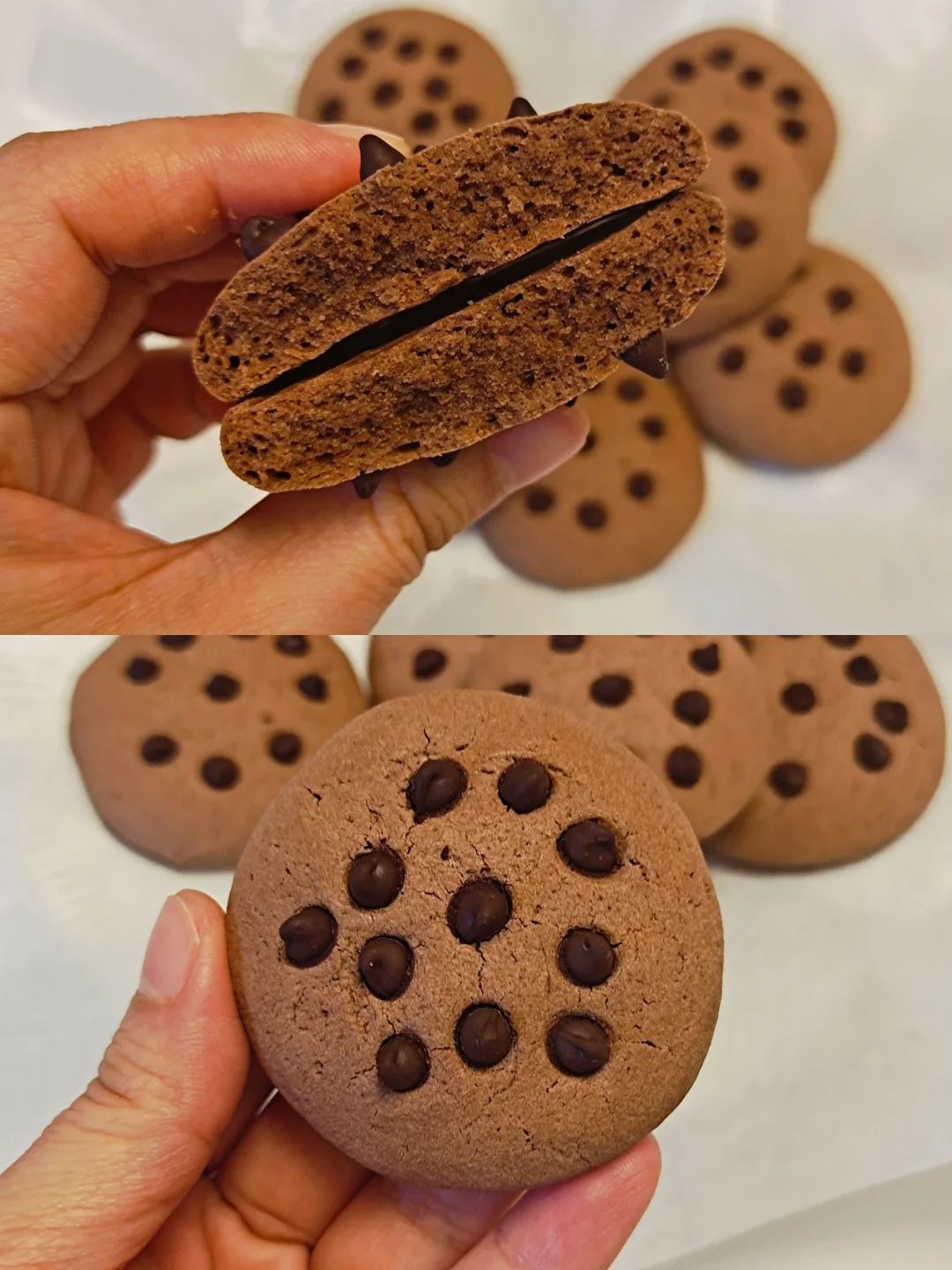 [彩虹R]黄油40克,糖粉35克,常温鸡蛋一个,低筋面粉70克,玉米淀粉30克,可可粉10克,耐高温巧克力豆。