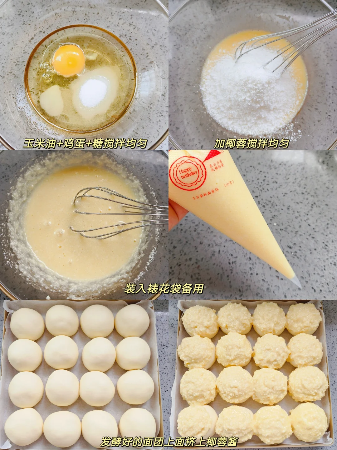 [彩虹R]椰蓉酱:玉米油60克,糖30克,椰蓉30克,鸡蛋1个。