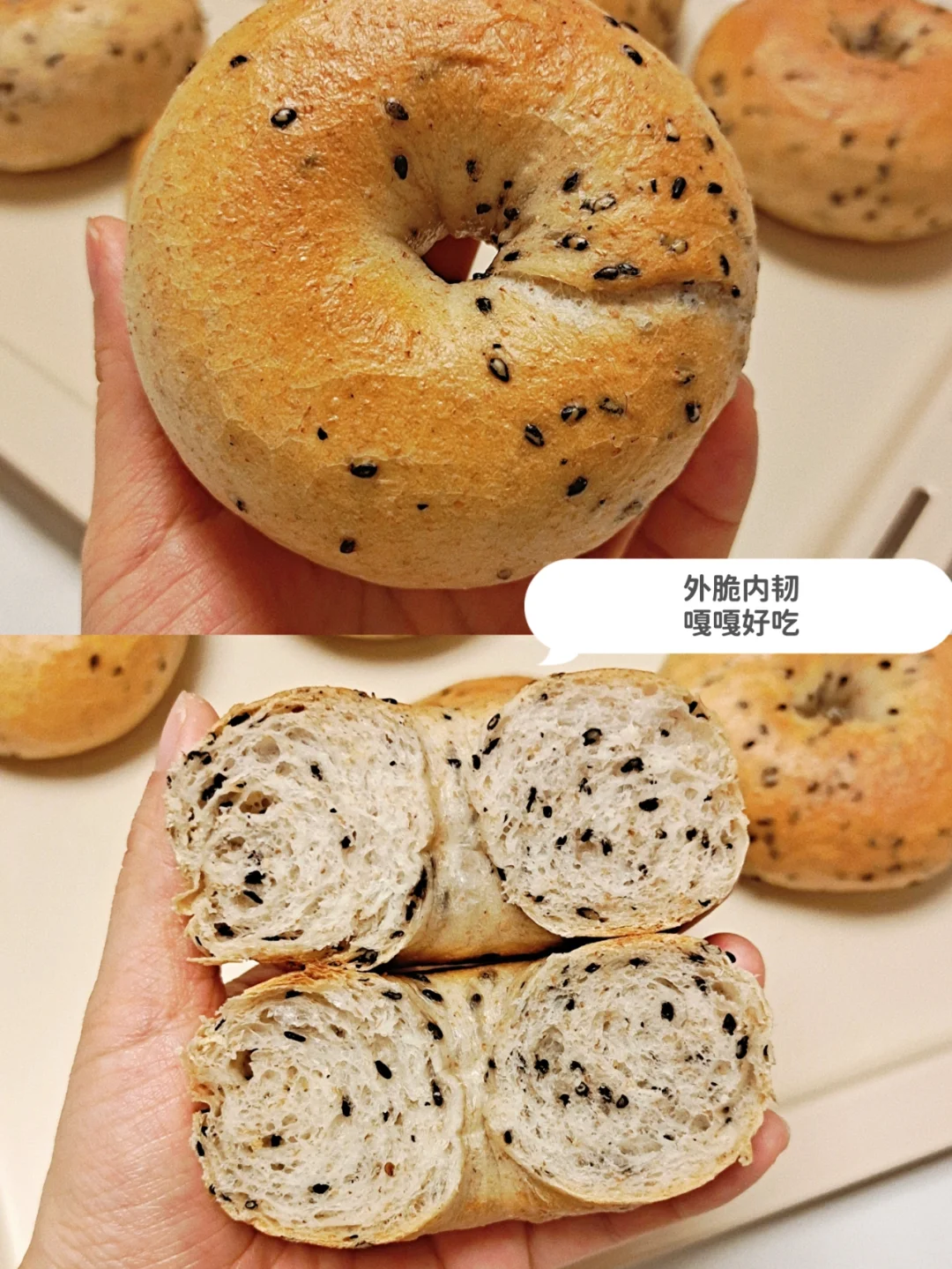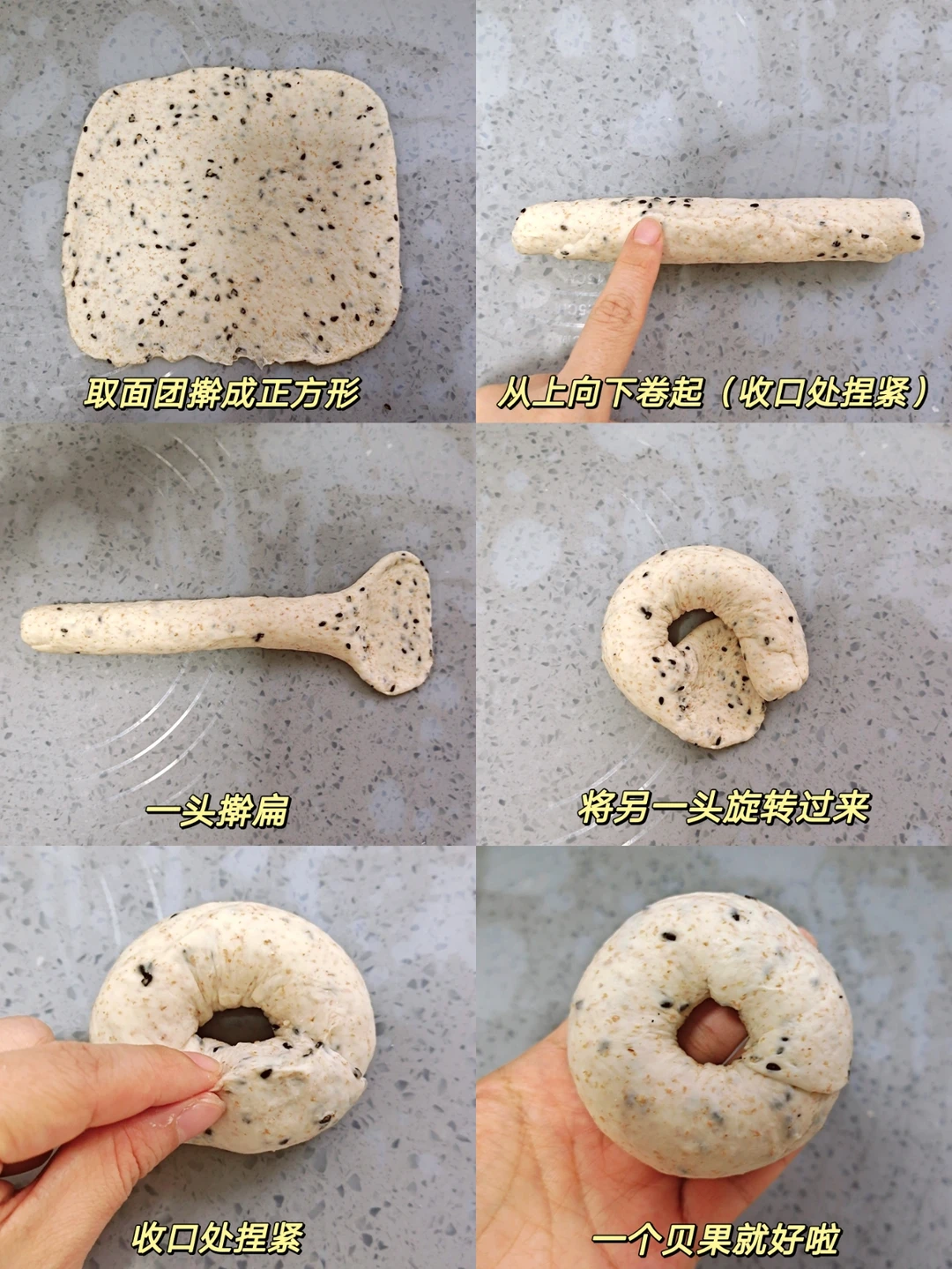 无糖无油的黑芝麻全麦贝果,材料很简单~