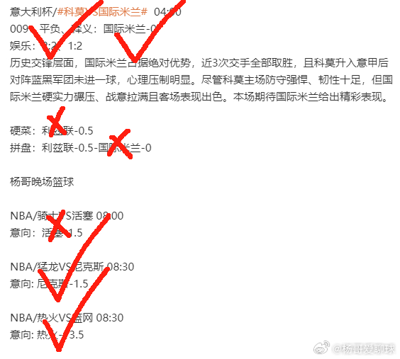 太强了兄弟们,昨天又狠狠拿下了,早场硬菜稳稳拿捏,真的不是杨哥吹牛,咱最近的手感真的热爆了!昨天整体表现也很不错,早场足球3红2,晚场足球5红3,篮球3红2,状态十分火热,观望的兄弟们,赶紧跟上啊!经常看杨哥的兄弟们知道,杨哥最近硬菜的命中率相当高,关注的兄弟们可以多关注杨哥的硬菜,保证质量。每天的早场和中场赛事杨哥都会在杨哥粉丝群里发放,晚场和半夜场也有不同的场次需要的可以进杨哥粉丝群去看 去交流 里面也要大神会给你门分析 串子组合等。群里的兄弟们已经迎麻了,还没进杨哥粉丝群的兄弟们抓紧了!