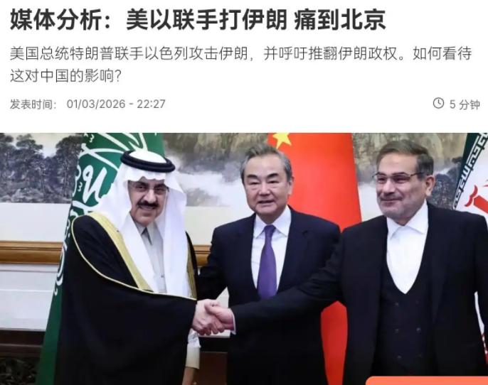 法国媒体发文声称!如今美国和以色列对伊朗的打击,实际上却是对中国的又一次削弱,一旦真的让美国彻底拿下了伊朗,或将直接对中国造成难以想象的影响,而这或许并不是空穴来风。 有人会问,美国、以色列和伊朗,离中国那么远,怎么就牵扯到我们了?其实很简单,不是他们打伊朗直接针对中国,而是伊朗对中国太重要了,美国拿下伊朗,就是想破坏中国的发展,这才是他们的真实心思。 中国和伊朗早就有深度合作,2021年还签了25年的合作协议,不是简单做生意,就是互相帮衬。 伊朗被西方制裁多年,没钱没技术,手里的石油卖不出去,国内设施也破旧;而我们中国需要石油,双方一拍即合。 我们帮伊朗建地铁、修铁路、开发油田,伊朗就用石油抵账,而且不用美元结算,不用看美国脸色。 单说石油,伊朗是我们重要的石油供应国,我们每天要从伊朗进口不少石油,这些石油能保障工厂开工、老百姓开车加油,价格还比国际上便宜。 而且全球很多石油都要经过霍尔木兹海峡,我们近一半的进口石油也得走这,要是美伊冲突闹大,海峡被封锁,油轮就得绕远路,运费涨了,最后还是老百姓买单。 正因为我们和伊朗合作这么近,美国才着急了,想通过打伊朗,破坏我们的合作,进而削弱中国。 要是美国真控制了伊朗,肯定不让伊朗给我们卖石油,短期内我们会缺石油,国内油价、物价可能会涨;我们在伊朗投的钱、建的项目,也可能白费功夫,这就是法国媒体说的道理,一点不夸张。 不过大家别担心,国家早就想到这些了,也有应对的办法。首先我们的石油储备很充足,短期缺石油也能应对。 其次俄罗斯给我们供石油很顺畅,每年都给我们送很多石油,还愿意扩大供应,我们还从巴西等国进口石油,不用单靠一个国家。 另外,我们国内自己也在多产石油、天然气,产量一年比一年高,能进一步保障供应,还开辟了新的石油运输路线,不用太依赖霍尔木兹海峡。 美国一直想遏制中国发展,之前打压我们的企业,现在又打伊朗的主意,就是想破坏我们的发展。 我们普通老百姓不用太操心这些国际纷争,油价、物价的波动国家会管控,只要跟着国家政策走,做好自己的事,就啥也不用怕。 我们要相信国家,国家早就做好了准备,只要我们跟着国家走,就没有克服不了的困难。