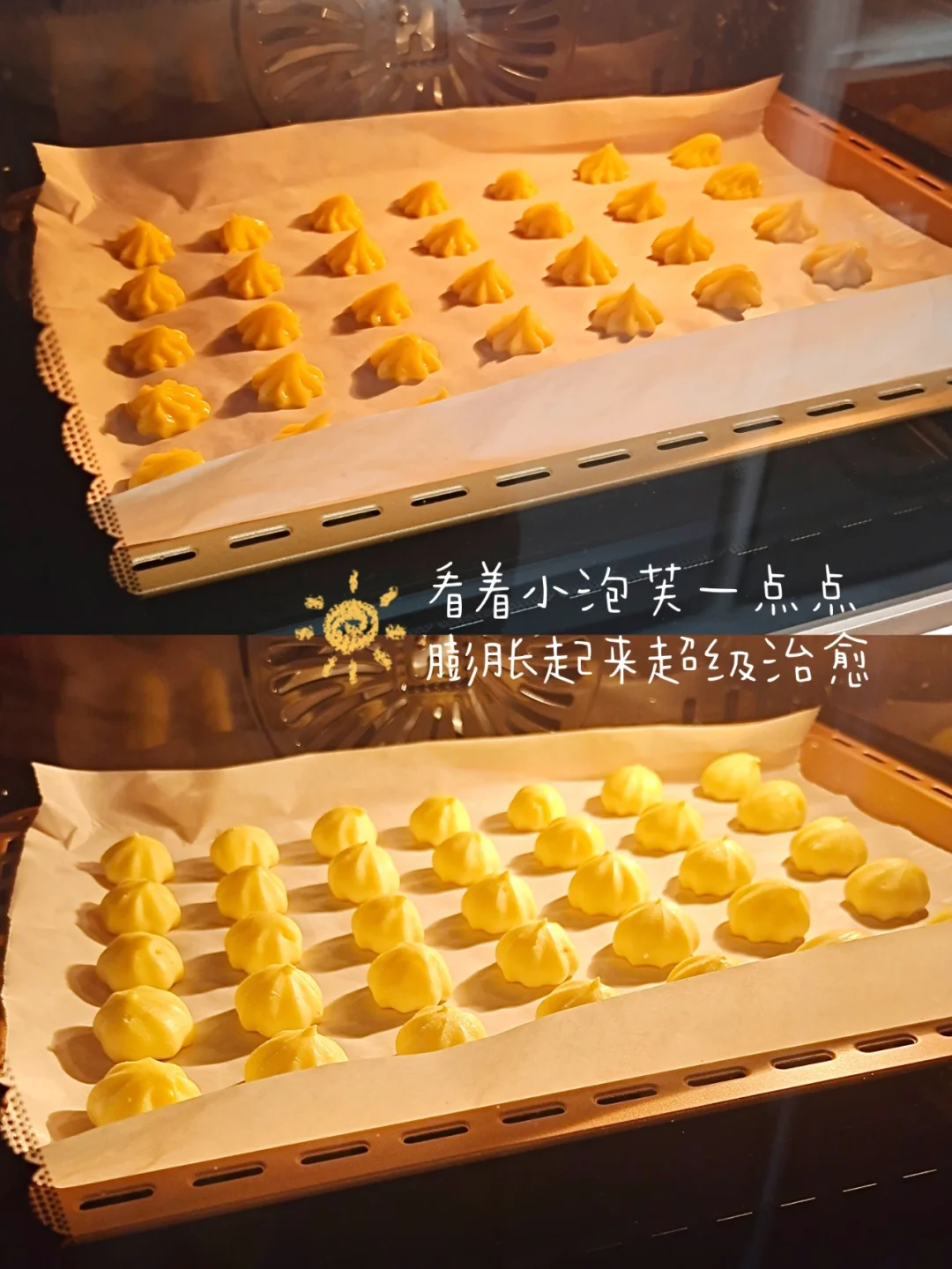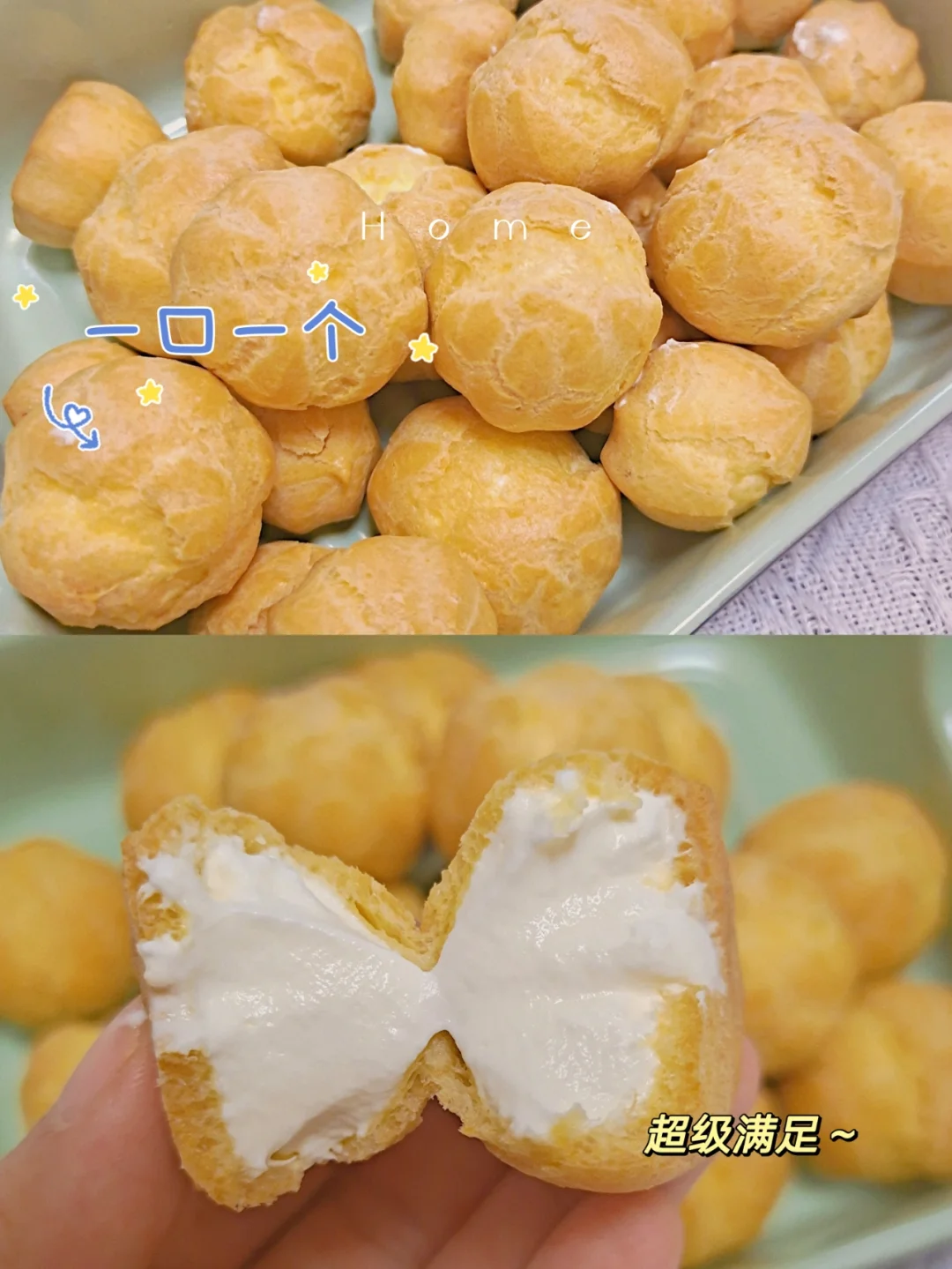 还在买外面的泡芙吗?自己做吧,真的超级简单~~一口一个,各个都是空心爆浆,根本停不下来,儿子一口气全部炫完,实现奶油小泡芙自由喽~[害羞R][害羞R][害羞R]