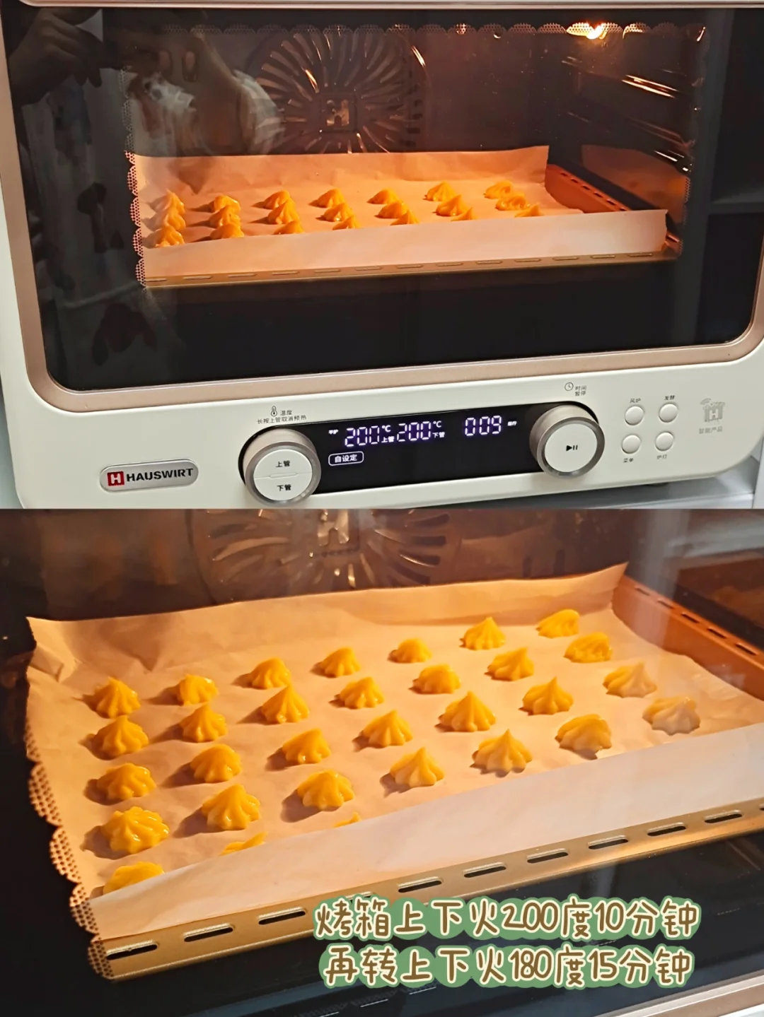 [四R]烤箱上下火200度烤10分钟,转180度烤15分钟,中途不要开烤箱门。