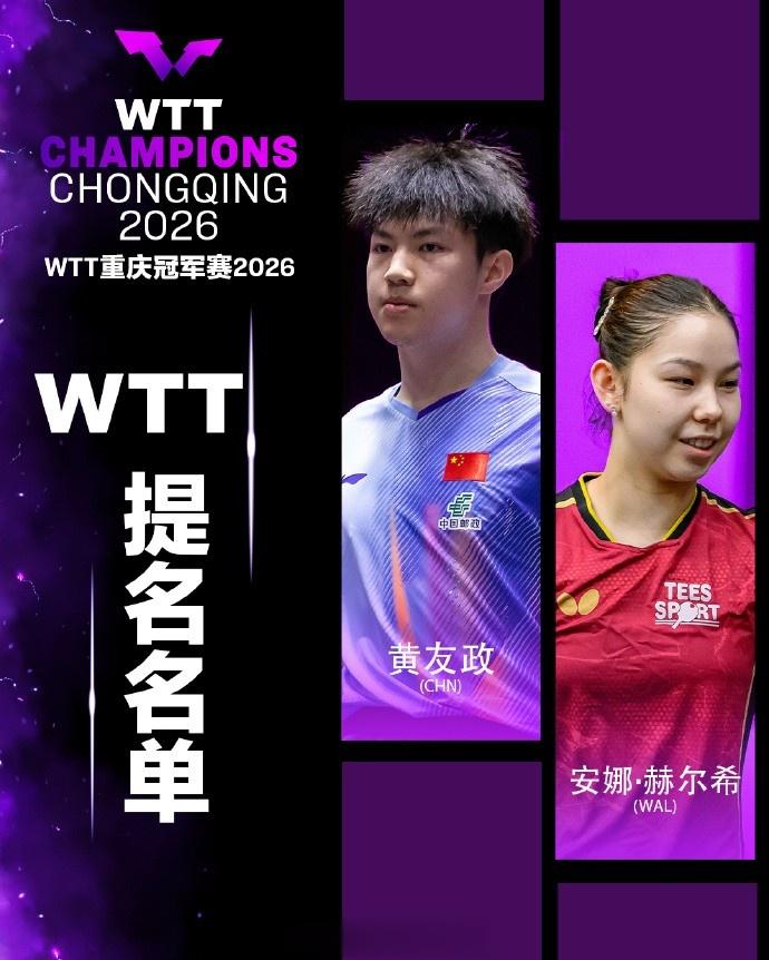 WTT重庆冠军赛2026将于3月10日至15日举办,本站赛事冠军将获得1000点世界排名积分。