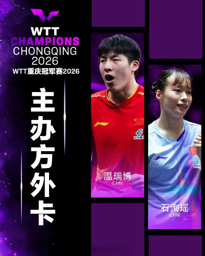 直播吧3月4日讯WTT重庆冠军赛外卡公布,国乒选手温瑞博、黄友政、石洵瑶通过提名和外卡进入本次比赛。