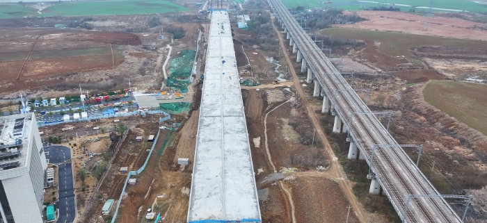 目前,工程主线桥部分现浇箱梁、雨水箱涵、江淮大道下穿隧道底板等关键节点已按计划完成,整体施工有序推进。下一步将抢抓施工黄金期,攻坚剩余现浇梁板、下穿隧道侧墙及顶板等施工,严控安全质量,确保工期稳步推进。