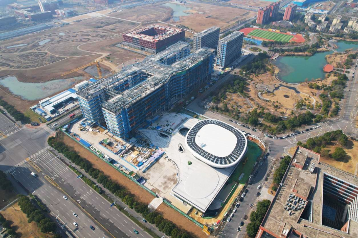 目前,1号楼B区报告厅已完成内外装饰,1号楼A区教学楼及2号综合服务楼主体结构、内装样板区已完工,幕墙工程完成20%。项目建设者抢抓节后施工黄金期,全力推进装饰装修与幕墙施工等关键工序。