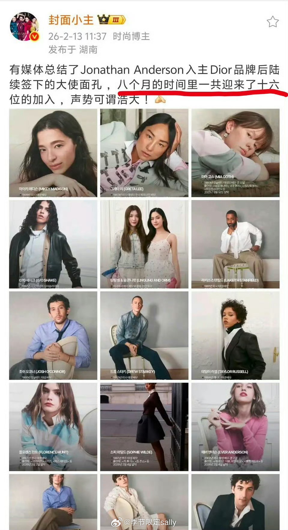迪奥还是有钱,8个月宣16位大使