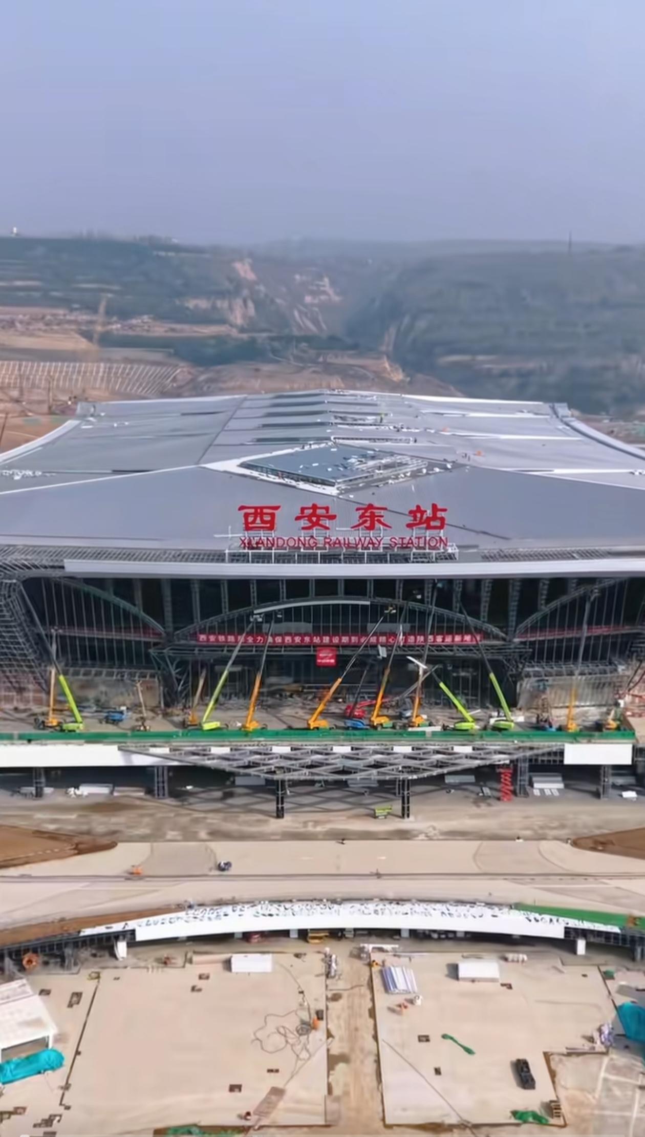 西安东站晚上那么耀眼,背后的白鹿原依稀灯火辉煌,可以预见,建成后的西安东站连同后面的那片塬将是一道亮丽的风景线,别看现在看似光秃秃的,因为一是没到枝繁叶茂时节,二是一些区域有待规划,这个庞然大物会彻底改变这片区域的面貌的。