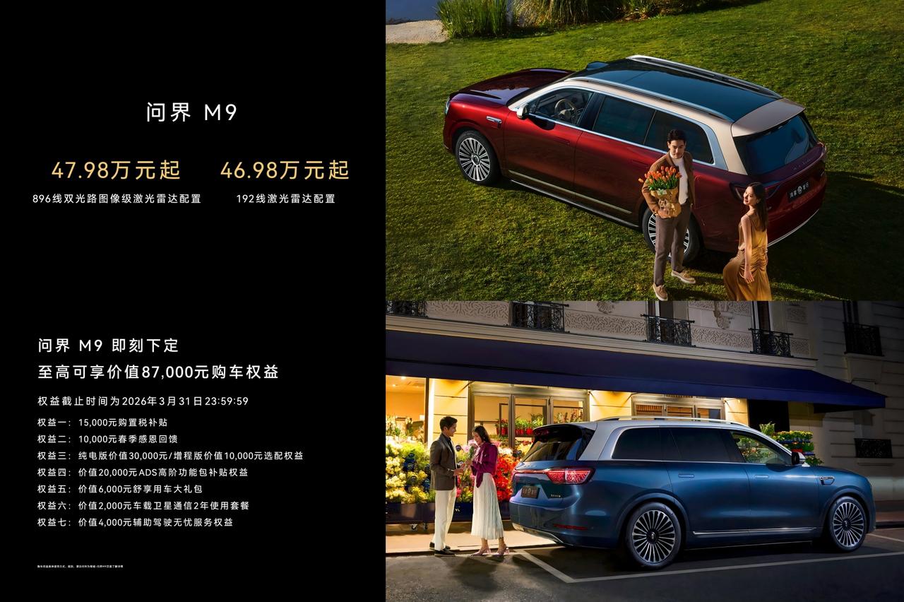 入手问界M9的那天起,我就知道自己选对了。两年多时间,见证它从"现象级旗舰"变成销量、NPS、保值率、安全、质量五冠王,累计交付突破28万台——这不只是数据,是每一个M9车主用实际体验投出的票。 但好的产品,从不止步于此。 今天,鸿蒙智行技术焕新发布会,问界M9将率先搭载全球量产最高896线数激光雷达。超高清、超精准、超远距,夜间暗色物体清晰可辨,高速路上的纸箱、锥桶、轮胎主动刹停避让,连野猪和小猫都逃不过它的"眼睛"。 感知精度和响应速度,又是一次全面跃升。 曾经选择它,是因为它足够优秀。 现在坚守它,是因为它还在持续变得更好。 这就是问界M9—旗舰,不只是一个起点。【来自懂车帝车友圈】