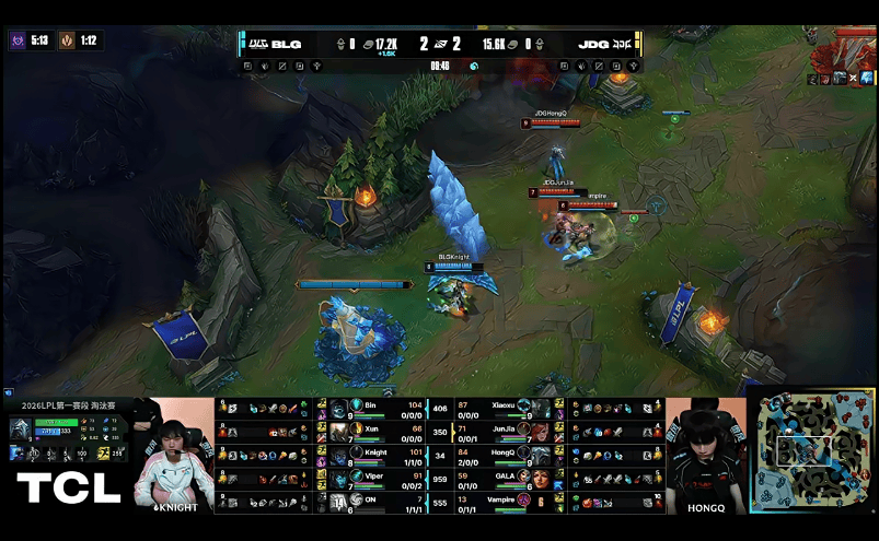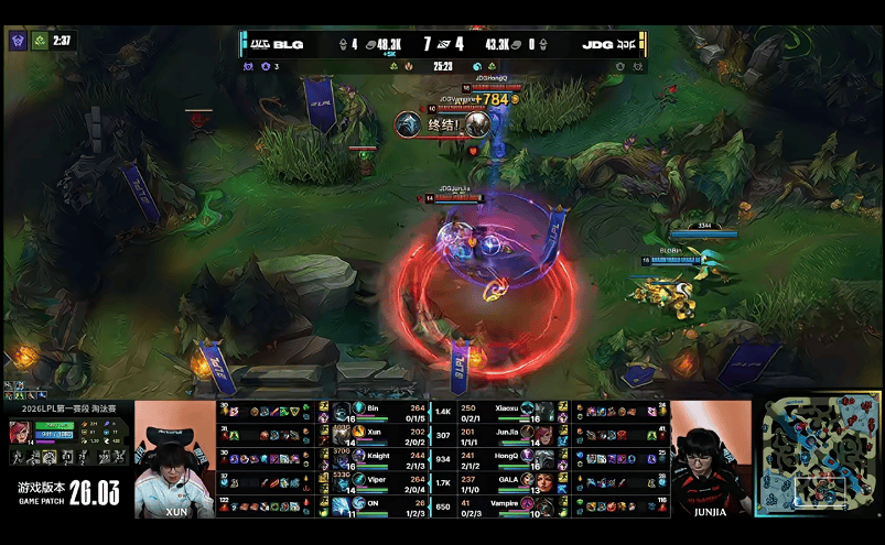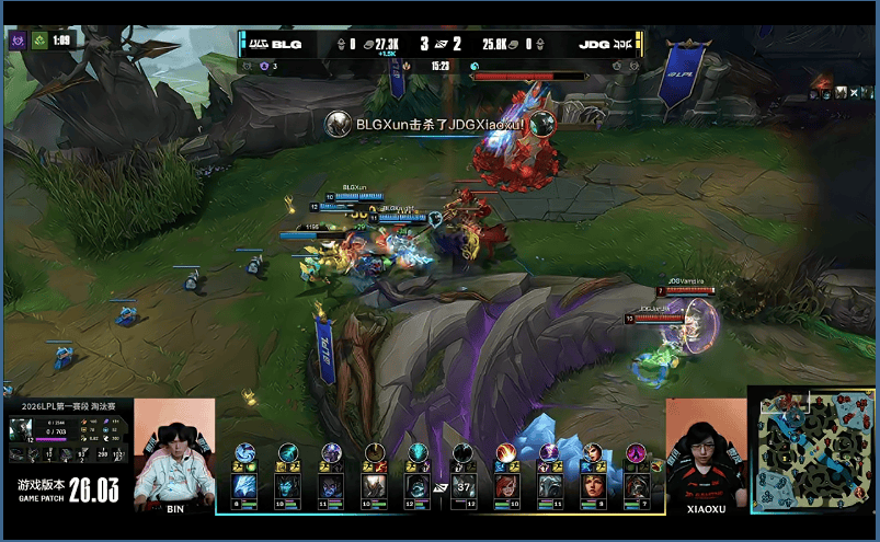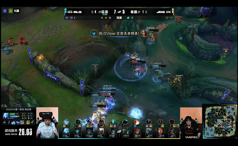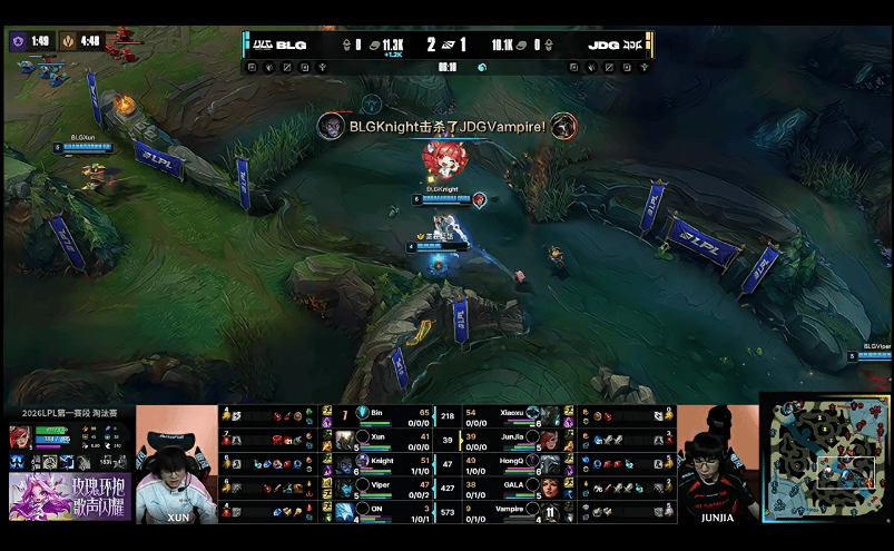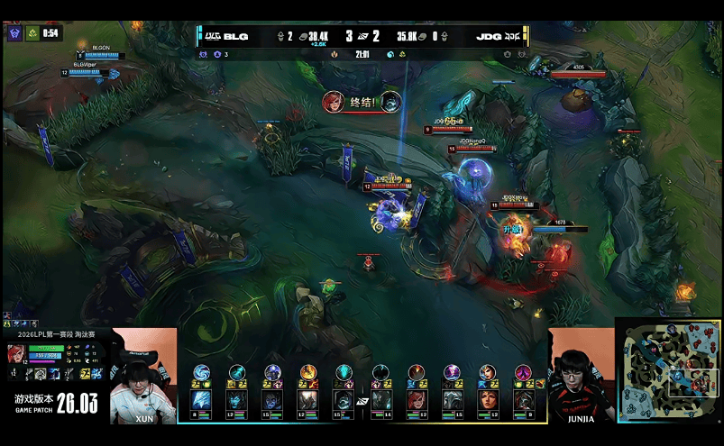 28分钟,JDG小龙接团彻底爆炸,BLG打出1换5,随后顺利一波