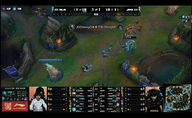 6分钟,JDG拿下小龙,但辅助阵亡
