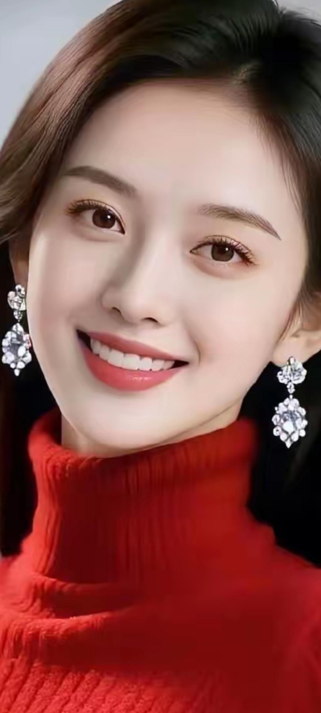 甜美笑容,红色毛衣,闪耀耳环,冬日暖阳下的美好时光。