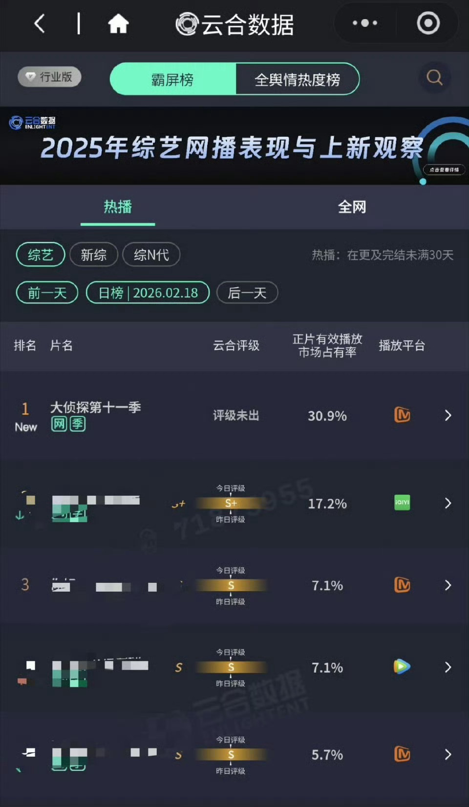 大侦探11云合评级云合S+认证,热度断层领跑🔥十年侦心不改,实力永远在线!大侦探 王者实锤,永远值得!