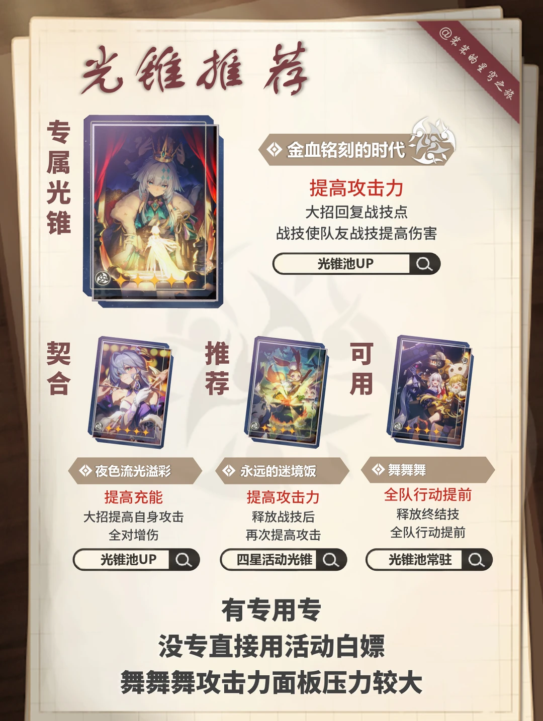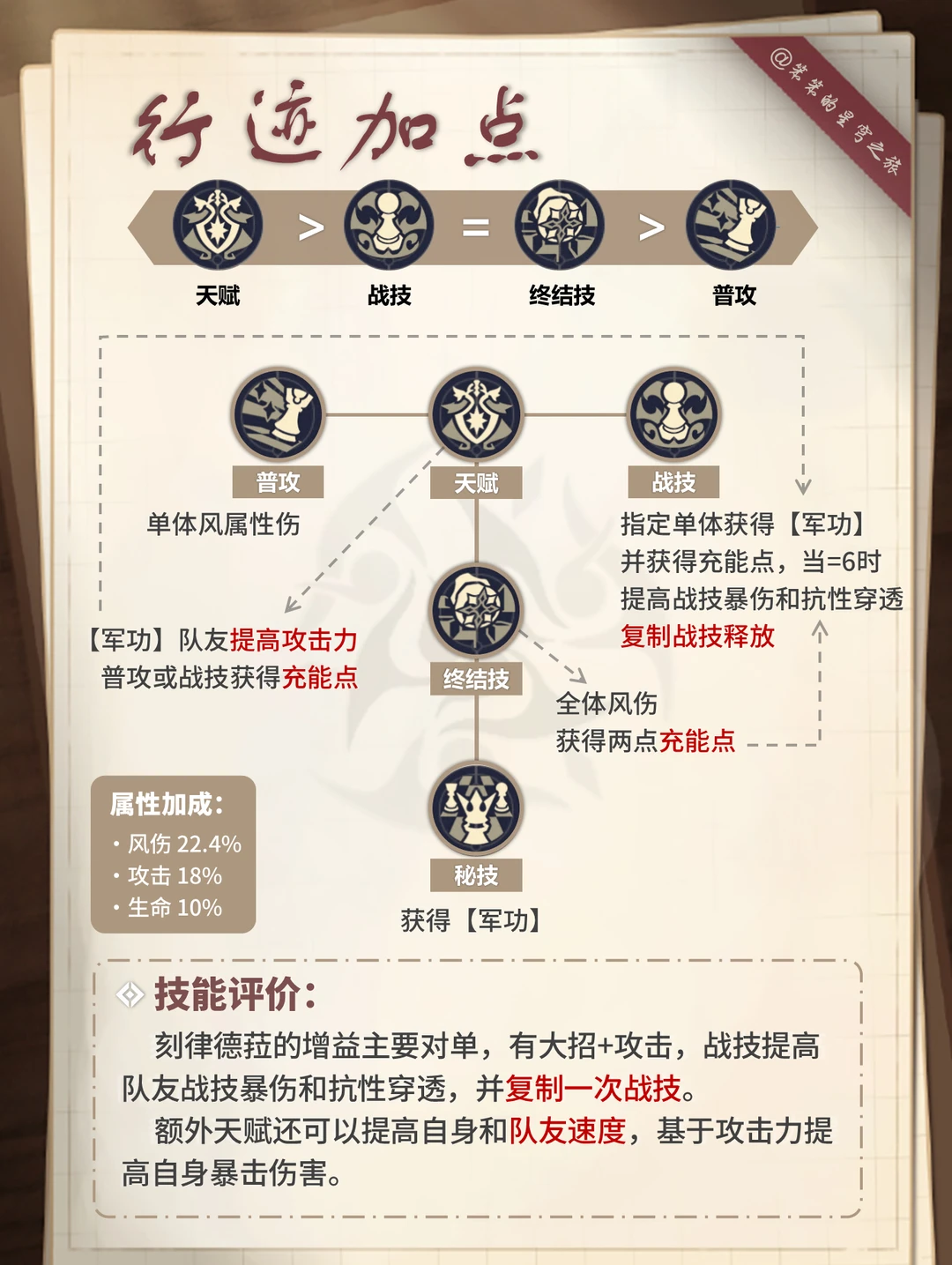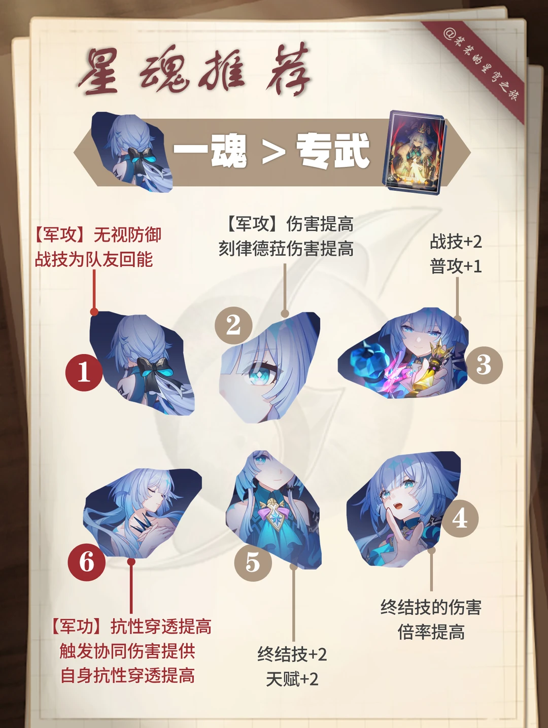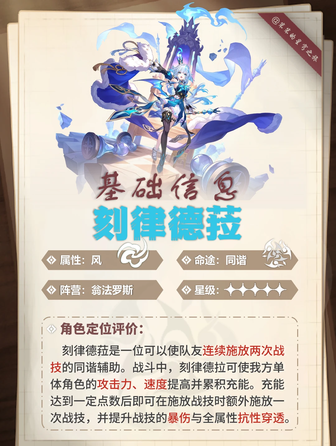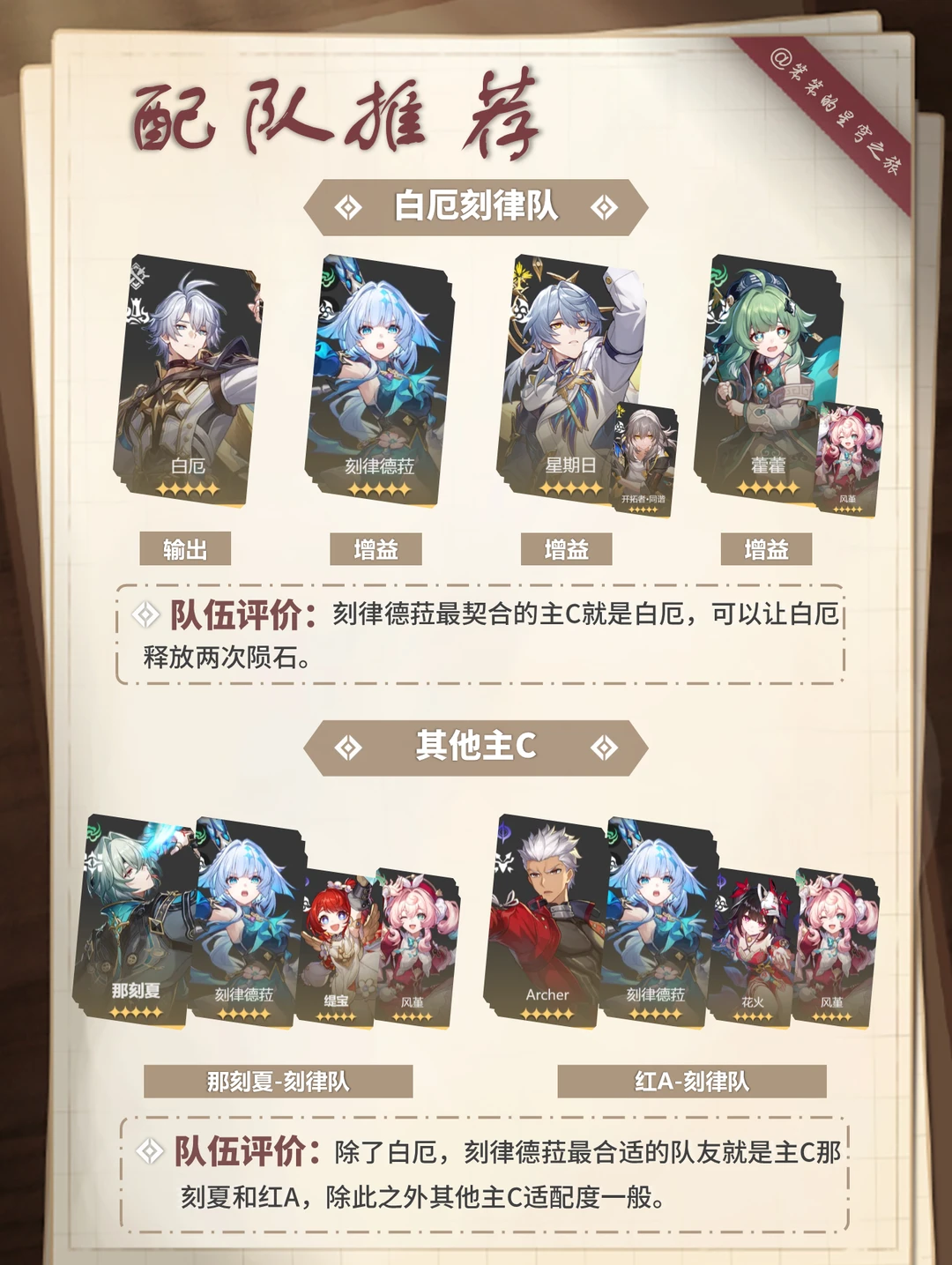 🐱大家好,我是笨笨的铲屎官 今天给大家带来的是刻律德菈的培养攻略 ▶刻律德菈的核心机制是复制战技 特定条件可以上主C打出双战技 所以适配的主C有:白厄、红A、那刻夏 强烈建议有白厄的玩家抽取 无论你的白色是0+0还是2+1 刻律德菈0+0即可 优先1+0,然后1+1