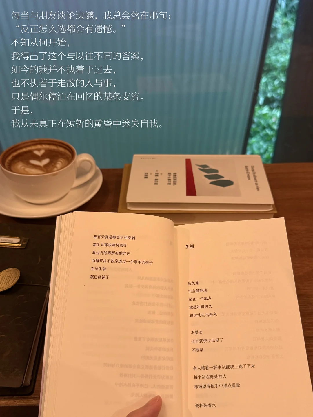 “反正怎么选都会有遗憾。”不知从何开始,我得出了这个与以往不同的答案,如今的我不执着于走散的人与事,只是偶尔停泊在回忆的支流。