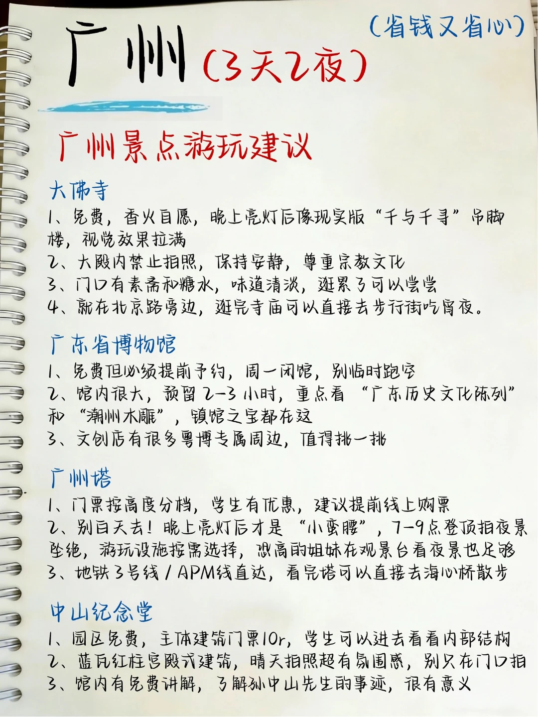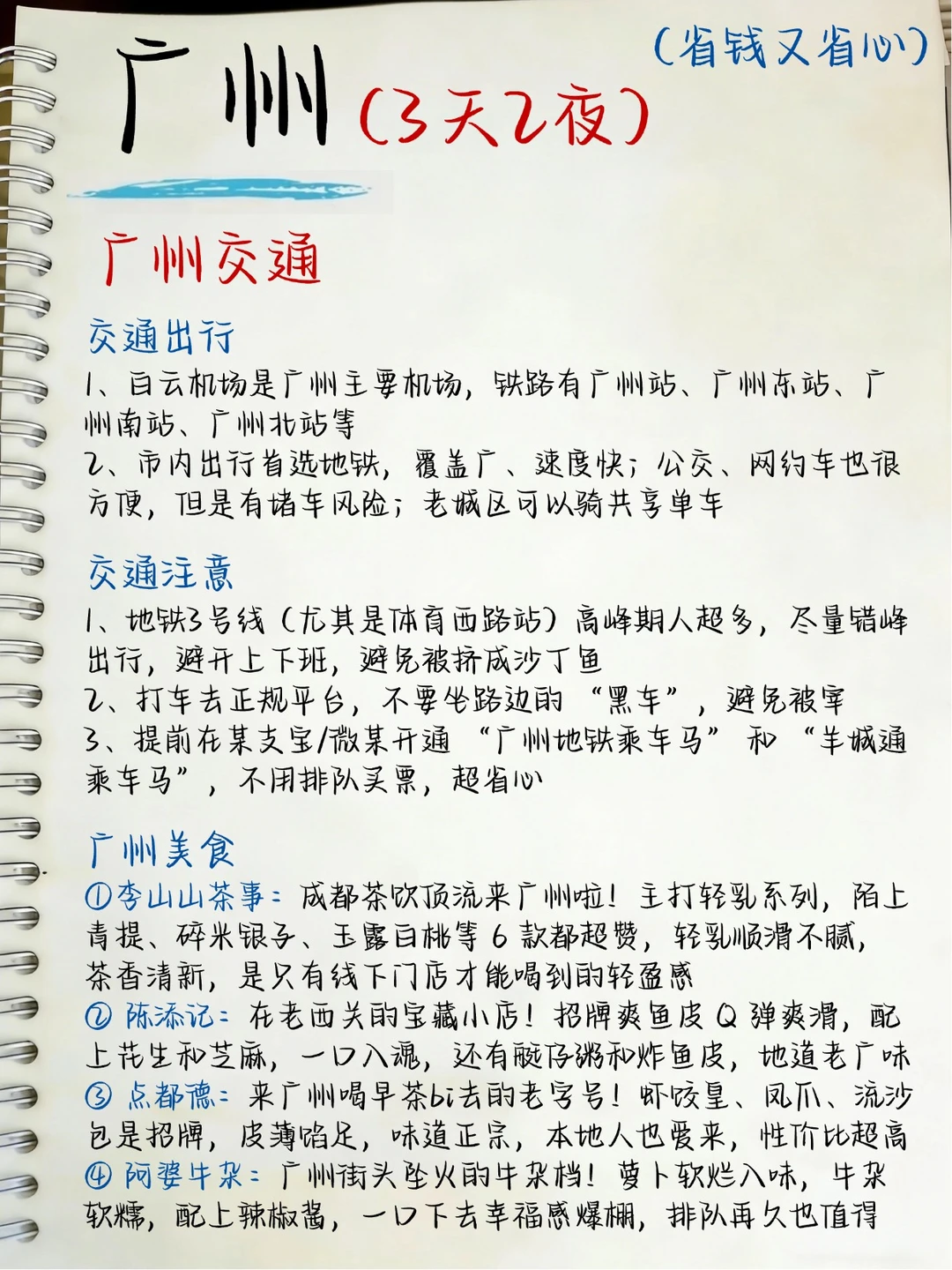 本地朋友熬夜手写的广州旅游攻略,送给第一次来广州玩的姐妹👭包含适合打卡的景点、交通住宿、美食等🥰欢迎大家参考✔