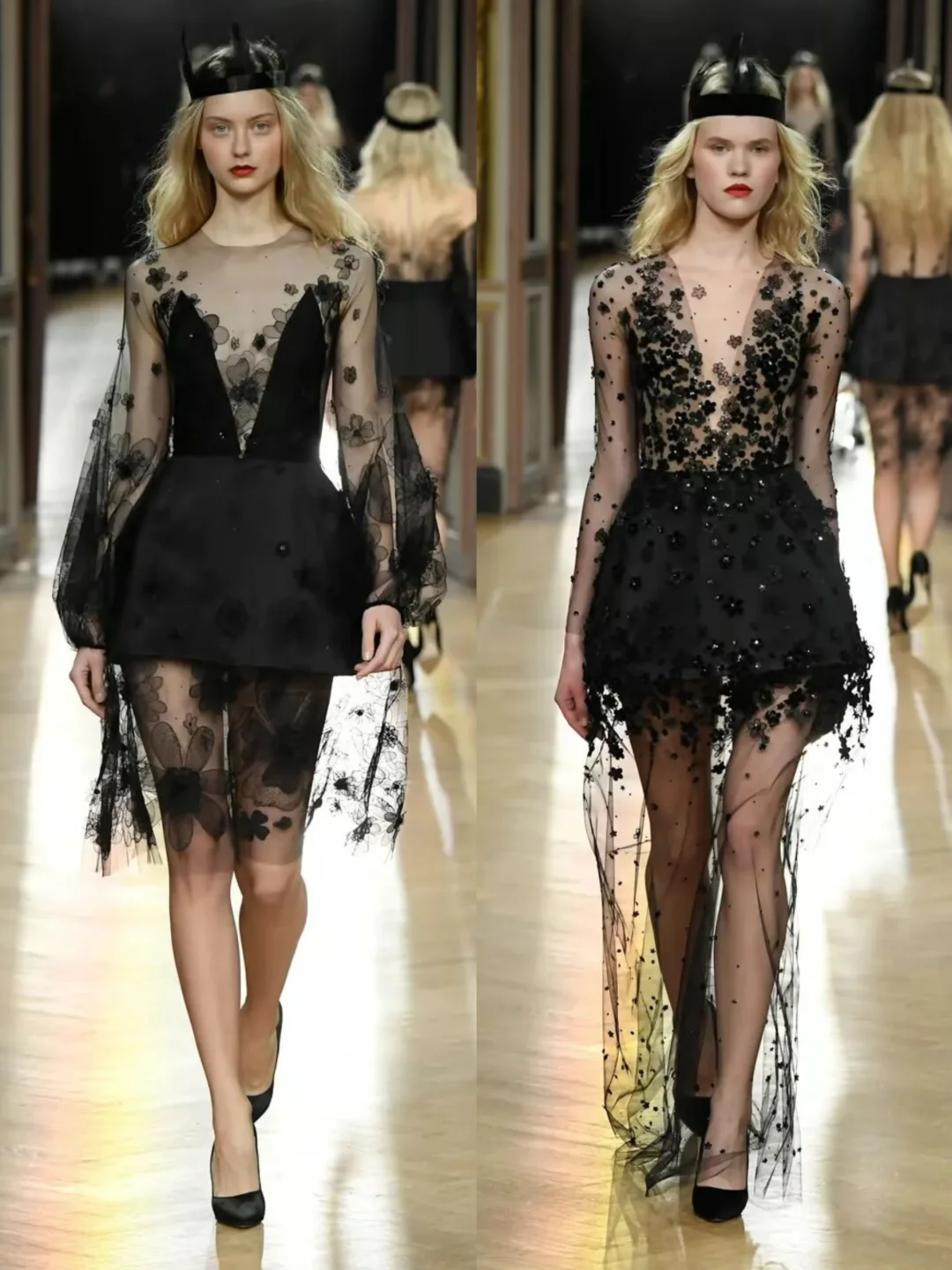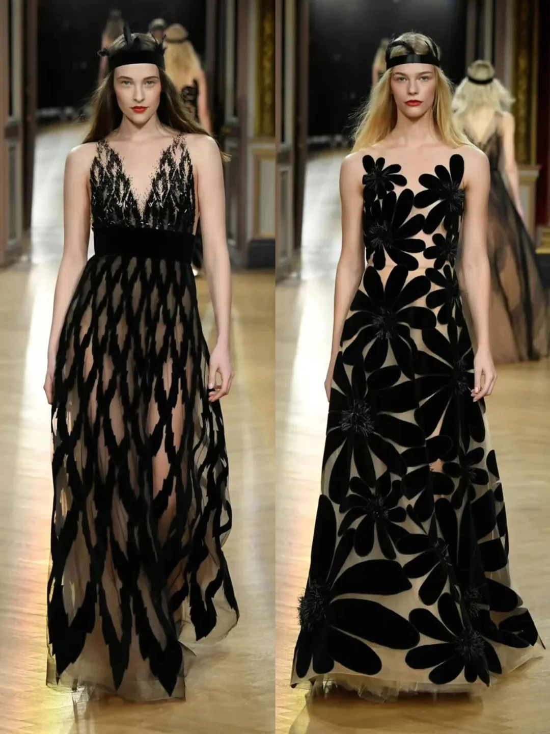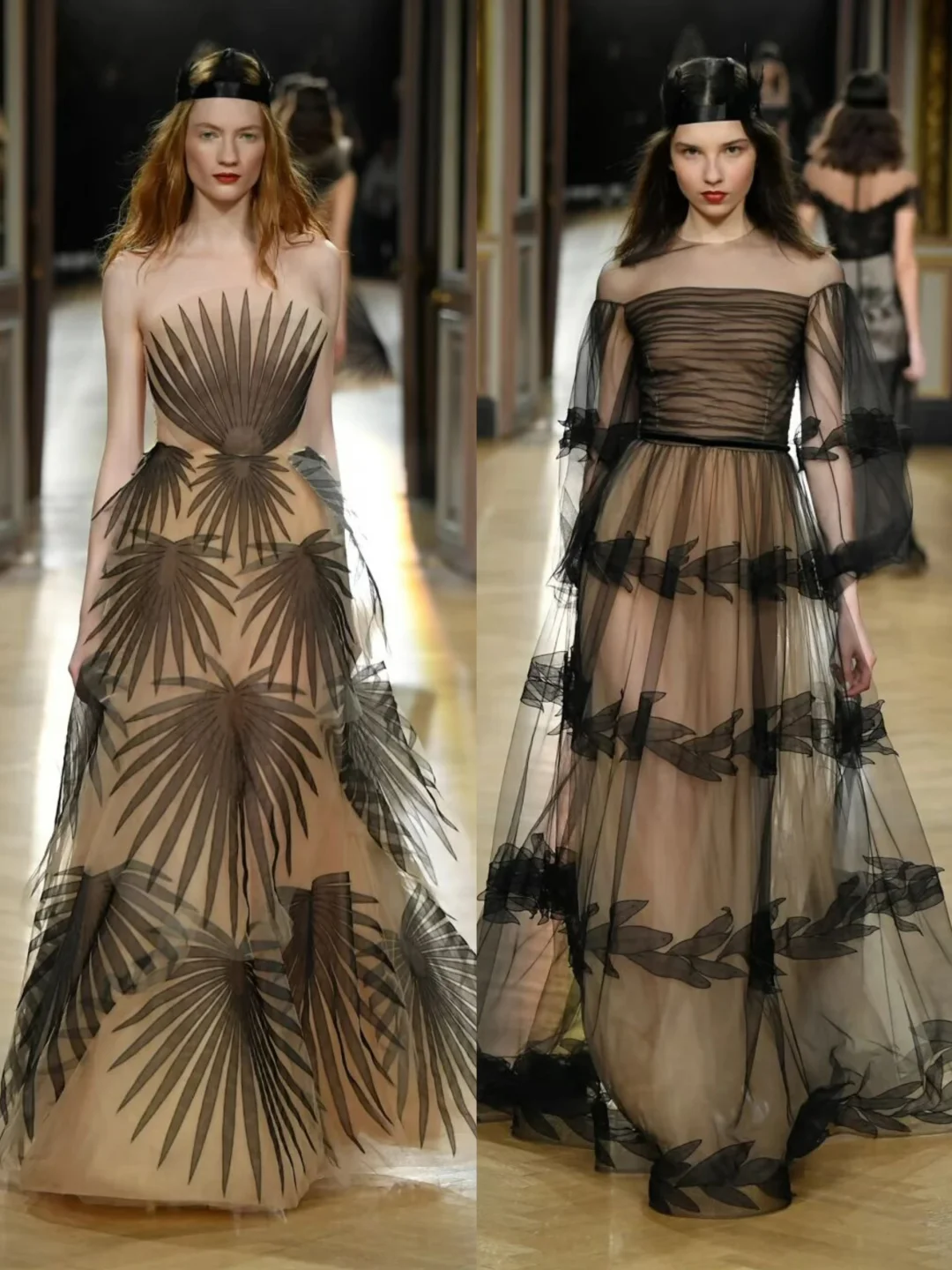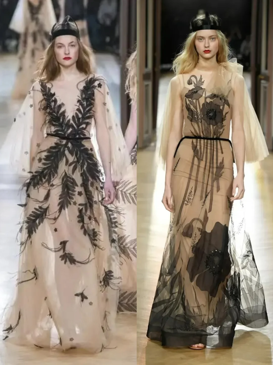 Yanina Couture 2018春夏系列的“树神之女”主题礼服,设计师用树叶和花卉的图案,把黑色和裸色的礼服变成了会呼吸的艺术品。 素材来源于网络若有侵权请联系删除寻找秀场上的美 秀场直击 秀场 时装设计 时尚 服装设计灵感 模特走秀 时装秀现场 服装流行趋势 艺术与时尚
