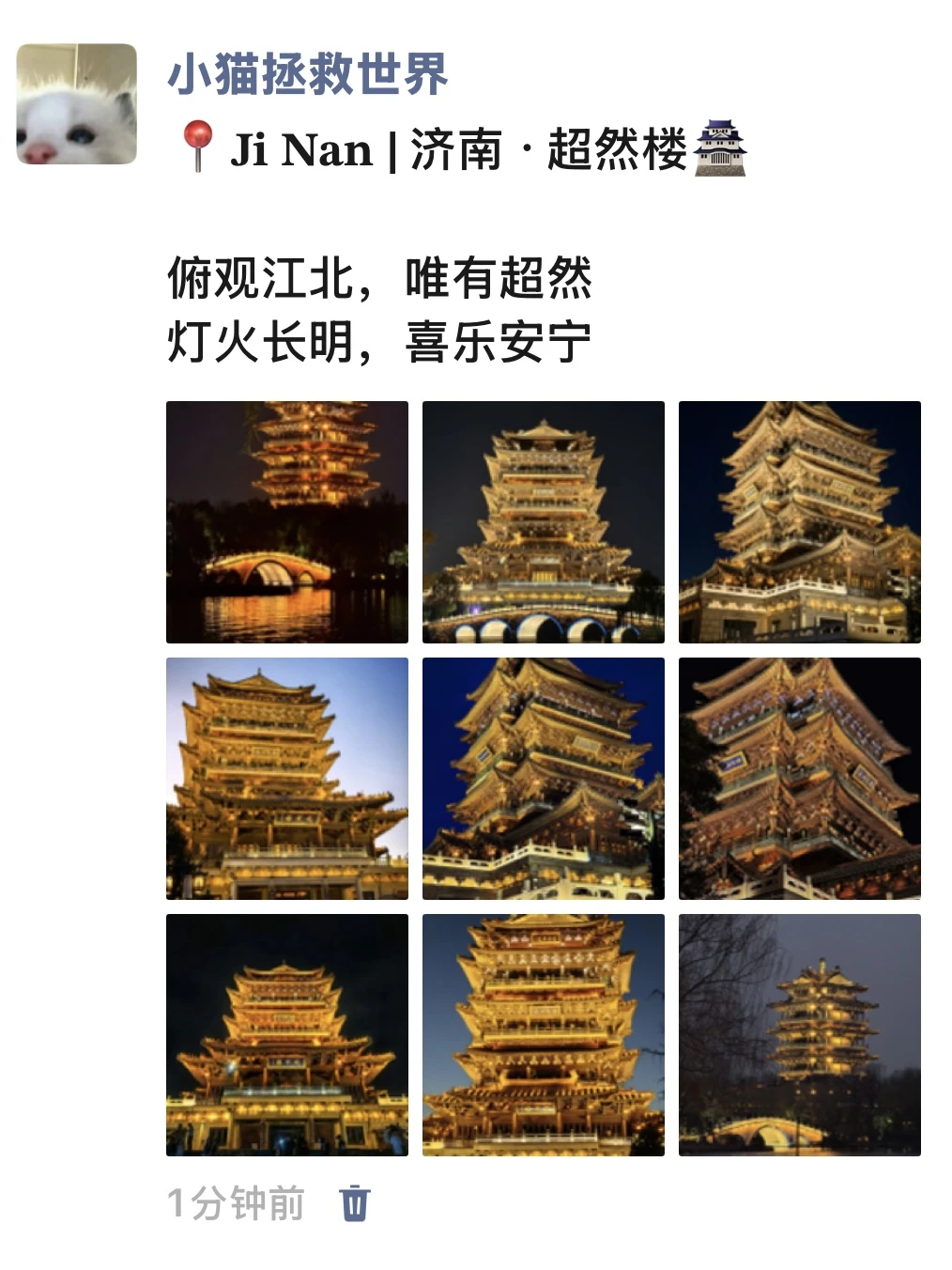 ✨超然楼:“灯火阑珊超然楼,一眼千朝越古今”,亮灯瞬间氛围感拉满,是济南夜景的C位担当。