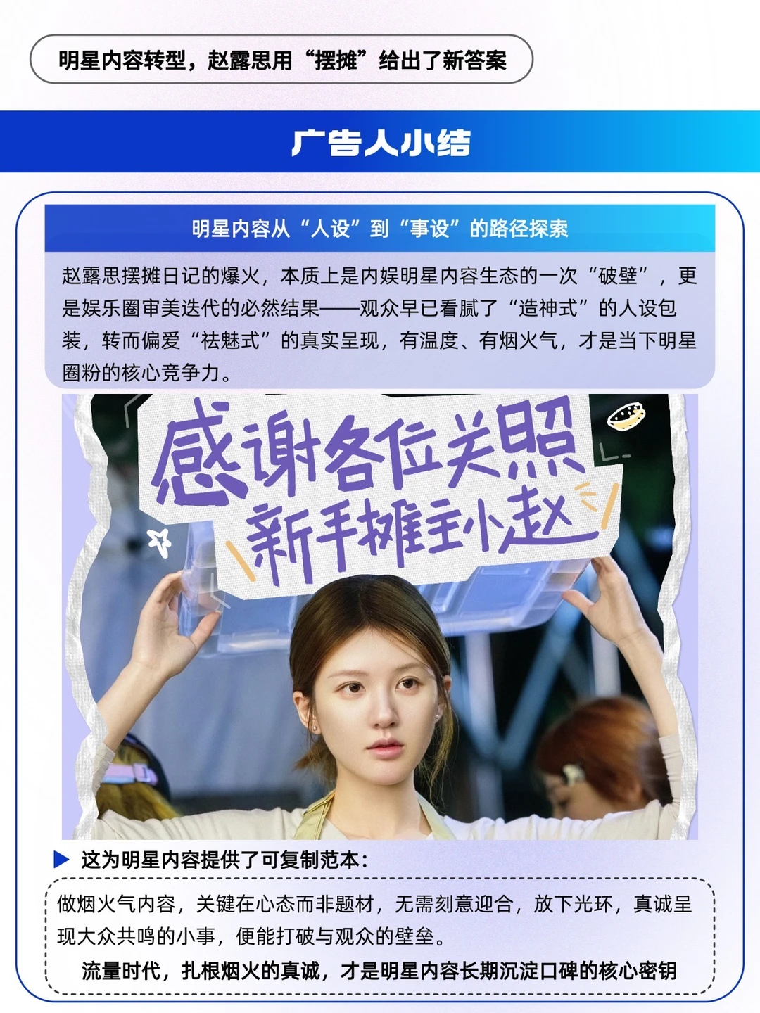 说到底,赵露思摆摊日记的爆火,核心是精准把握了观众的喜好:如今大众早已厌倦了过度包装的完美人设,更偏爱这种“祛魅”后的真实感[哇R]