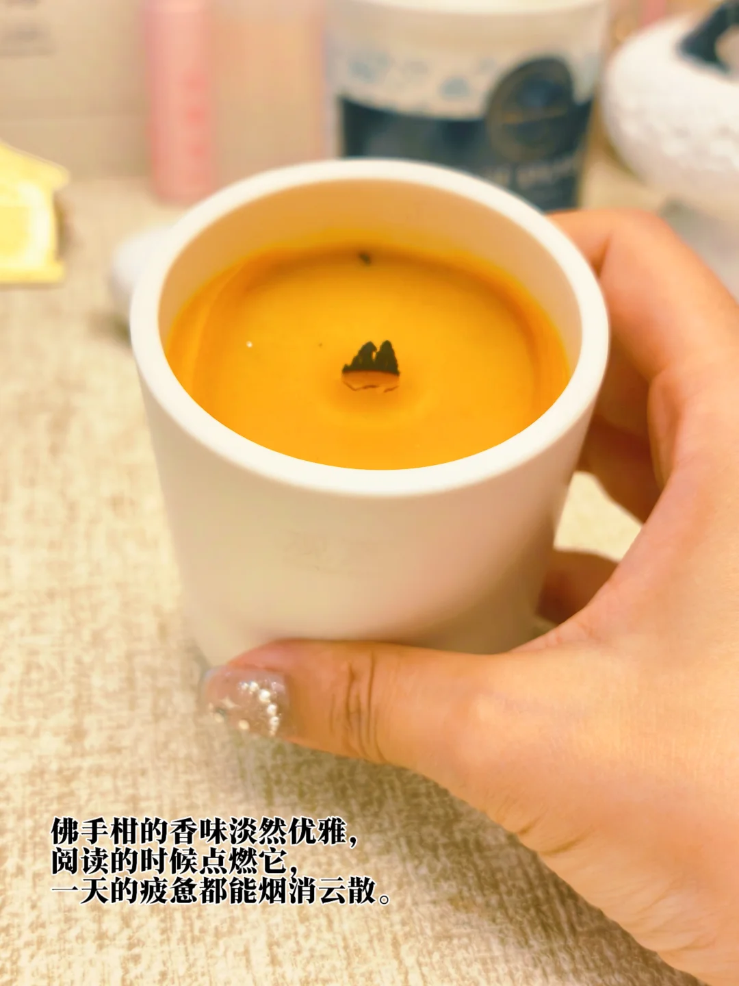 这支以佛手为意象的蜡烛香氛,火焰摇曳如手指舒展,它不似传统香薰执着于“完美”的馥郁,反而像一位松弛的旅人,在东方禅意与现代轻盈间自在游走。佛手柑的香味淡然优雅,阅读的时候点燃它,一天的疲惫都能烟消云散。