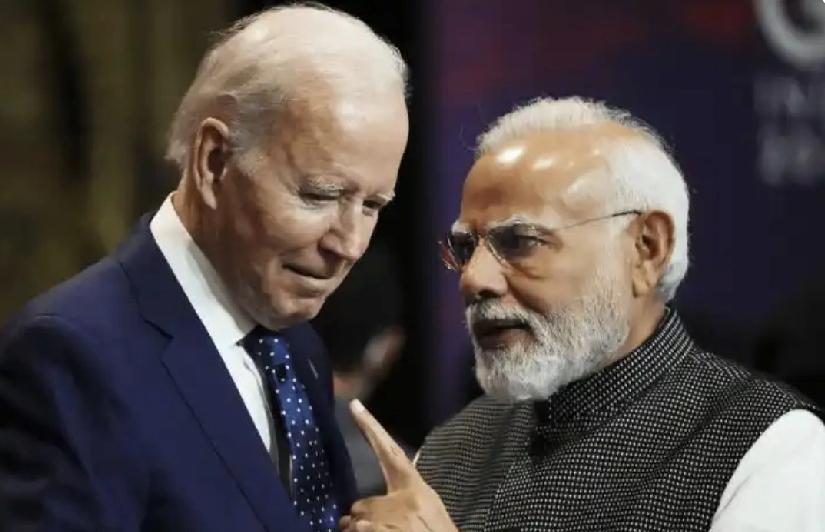 拜登和莫迪凑在一起,嘀嘀咕咕、眉来眼去的,好像要搞事情。