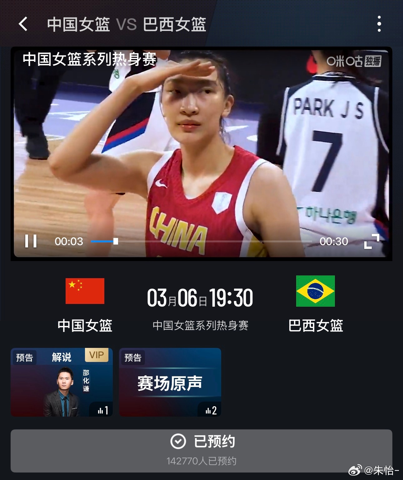 【抽门票】湖南的朋友看过来!!中国女篮系列热身赛,3月6日19:30,中国女篮vs巴西女篮第二场,将在长沙民政职业技术学院大运馆开打,送出你的祝福,5号评论区18:00抽!没抽到朋友记得在咪咕看哦!