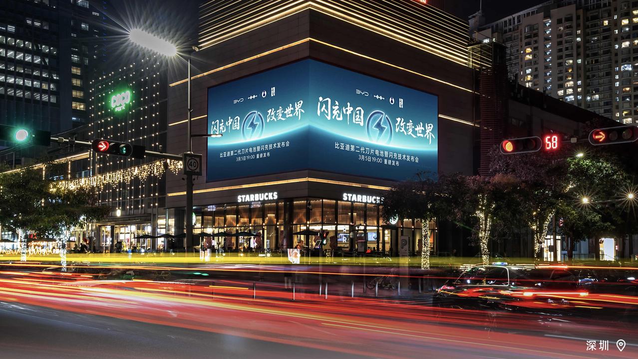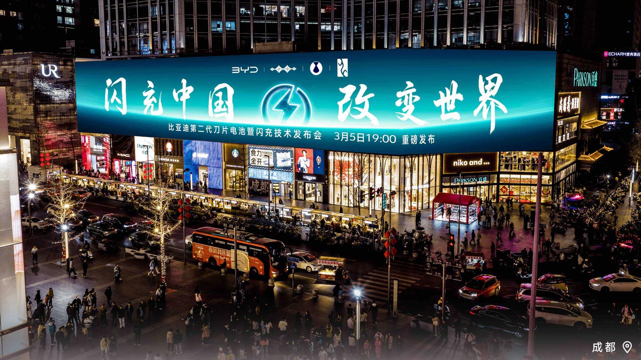 壕无人性啊,比亚迪在成都、东莞、郑州等9城核心商圈大屏集体亮灯!