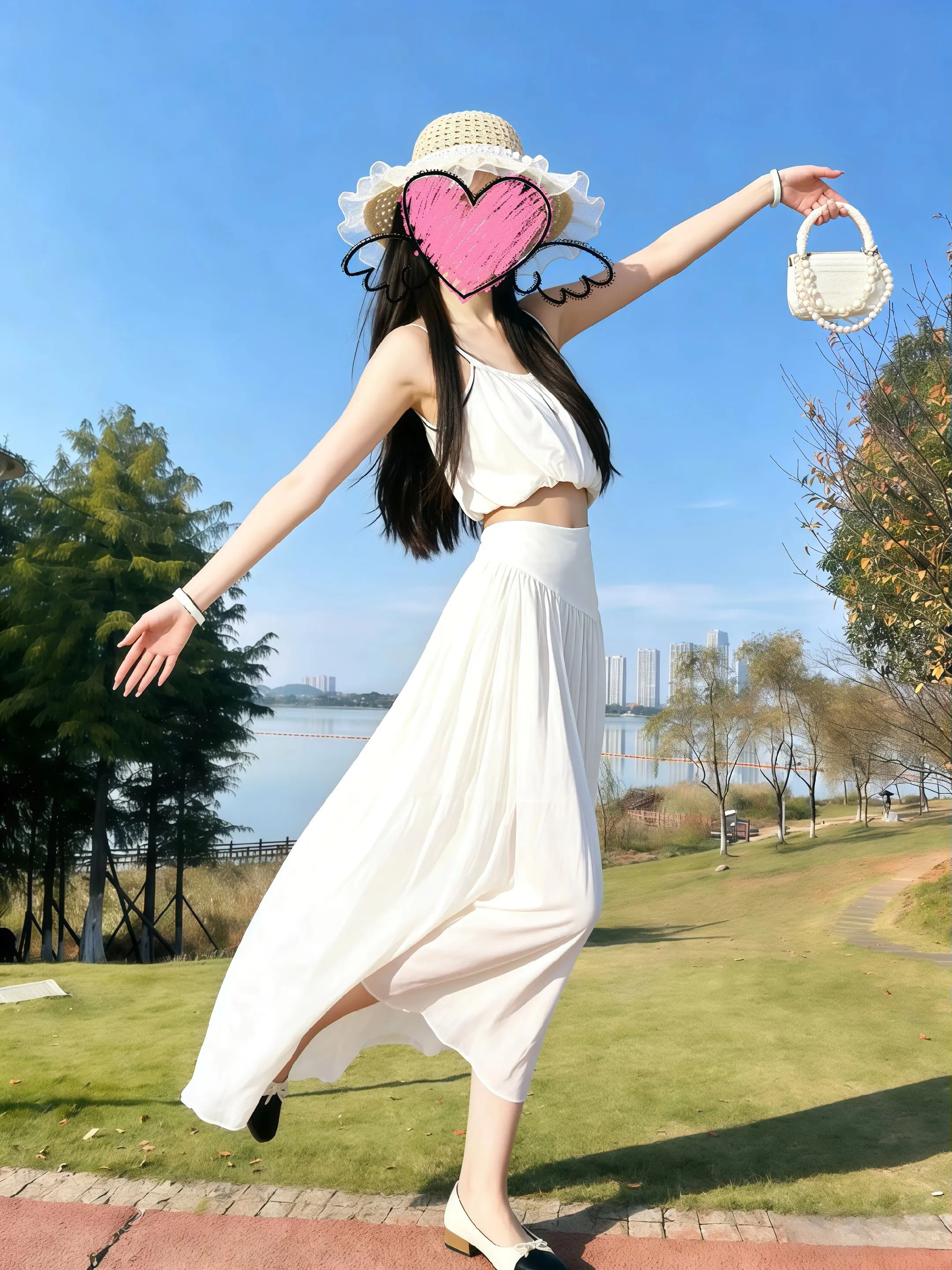 158OOTD.谁懂啊!夏天穿这套真的又仙又烦😭 吊带露腰怕晒,长裙又闷又粘腿, 但架不住拍照太出片!20+姐妹湖边、草坪随便凹, 风一吹氛围感直接拉满,美就完事儿了~