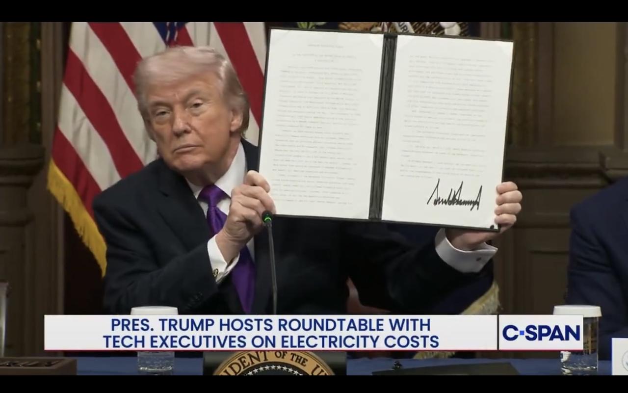 特朗普总统签署“纳税人保护承诺”(Ratepayer Protection Pledge)公告,要求科技公司为人工智能系统导致的更高电价买单。旨在加强美国在人工智能领域的领导地位,同时确保美国民众不会因更高的电费而负担过重。