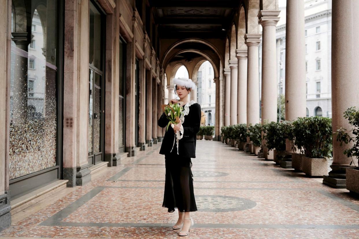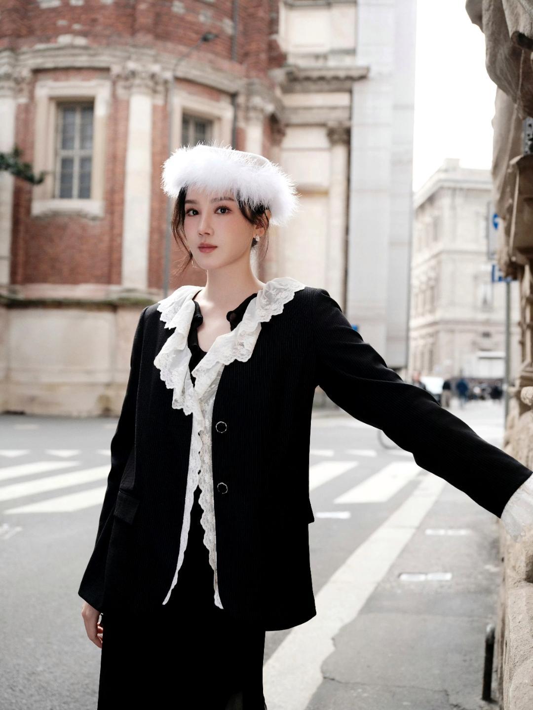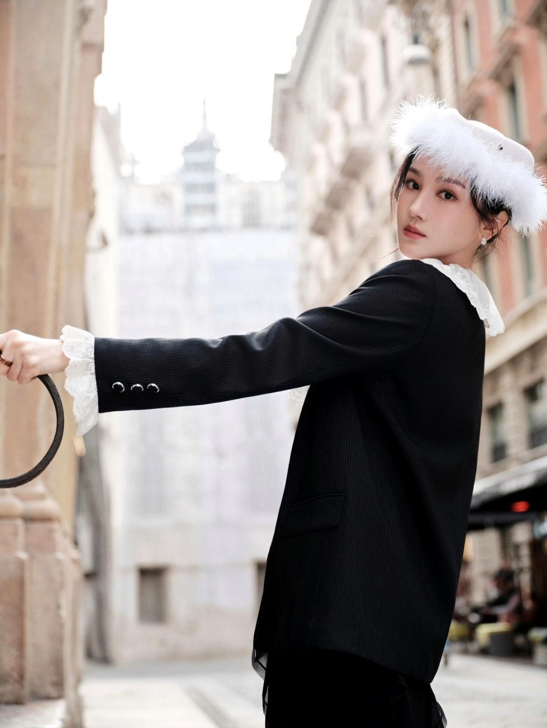陈小纭用一组胶片感大片,将法式浪漫与都市摩登完美融合。在欧式建筑的映衬下,她宛如