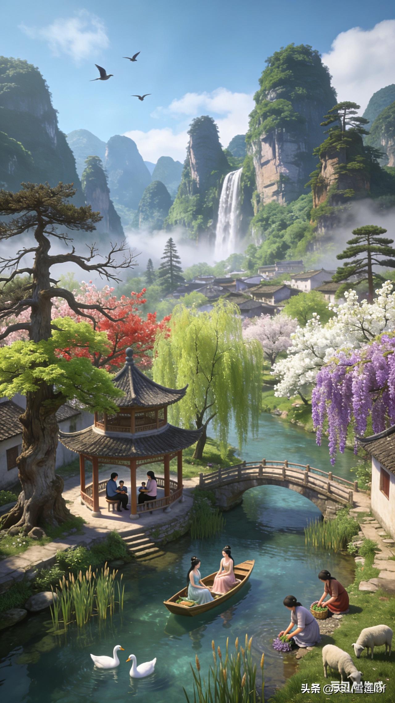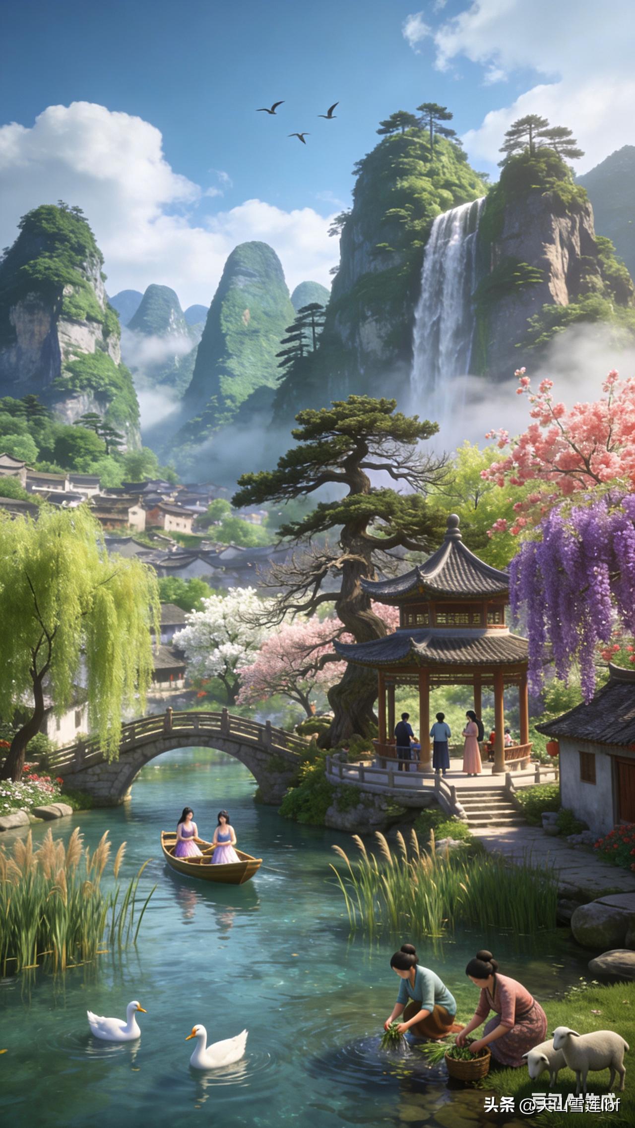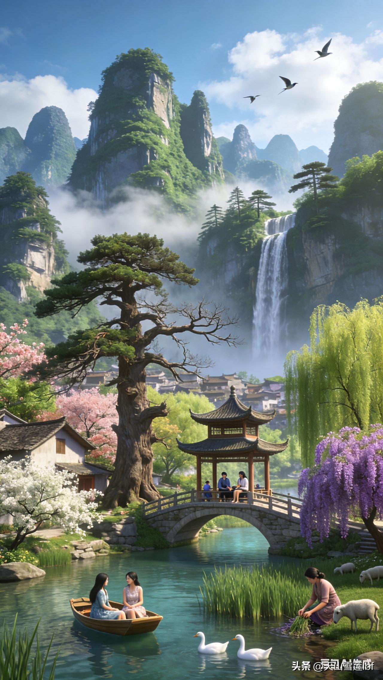 高山流水,小桥人家,山村风景美如画