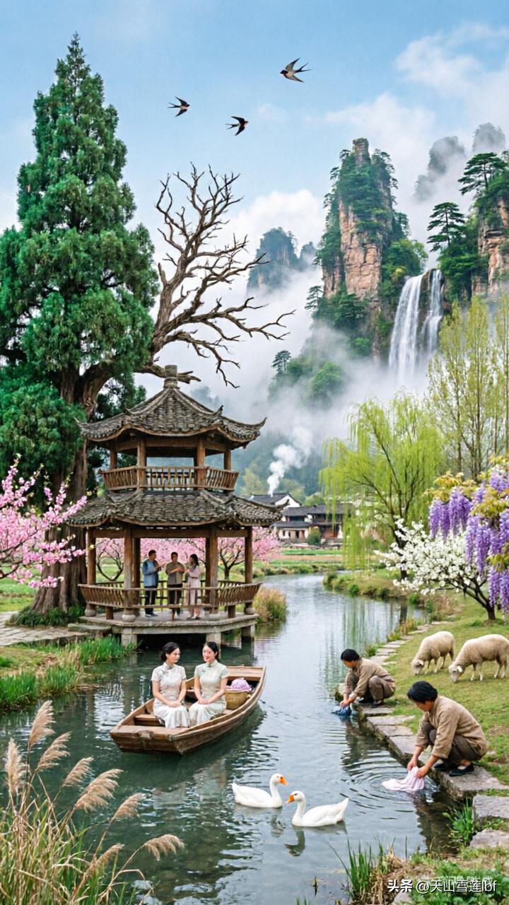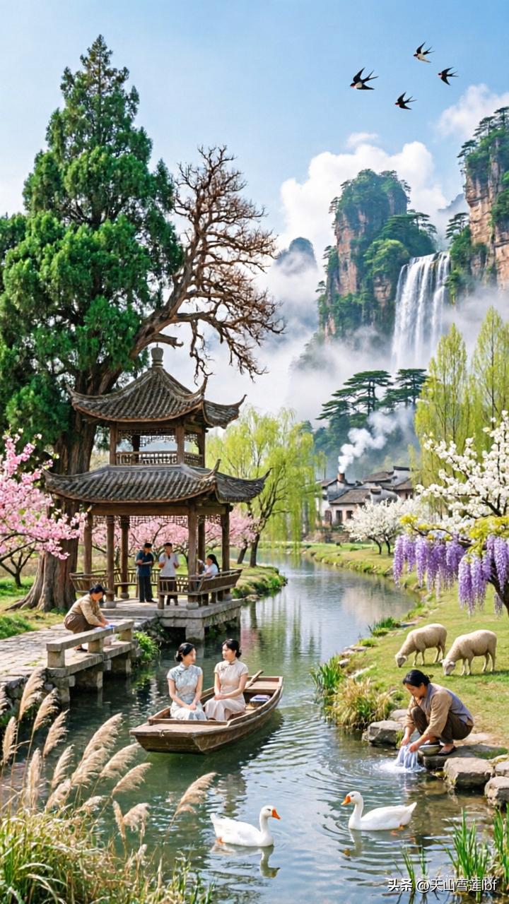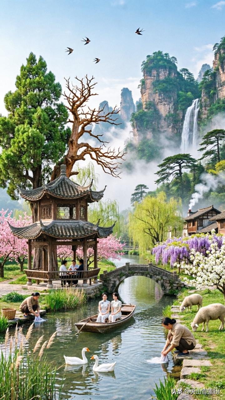 高山流水,小桥人家,山村风景美如画