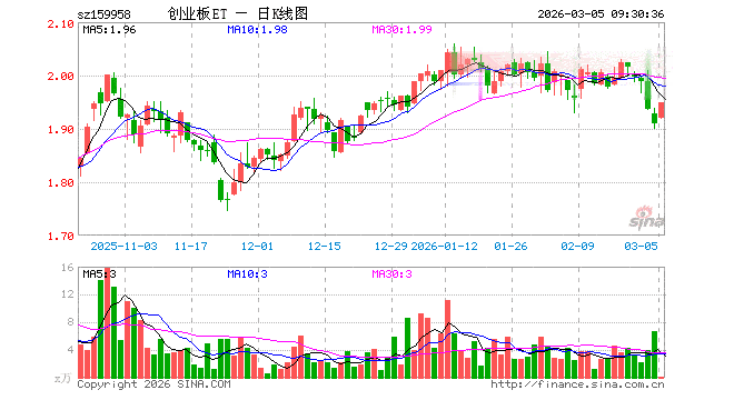 3月5日,创业板ETF工银(159958)开盘涨0.52%,报1.919元。创业板ETF工银(159958)重仓股方面,宁德时代开盘涨1.68%,中际旭创涨3.15%,新易盛涨4.22%,东方财富涨1.47%,阳光电源涨1.88%,胜宏科技涨2.26%,汇川技术涨5.02%,迈瑞医疗涨1.28%,温氏股份涨0.06%,天孚通信涨1.92%。