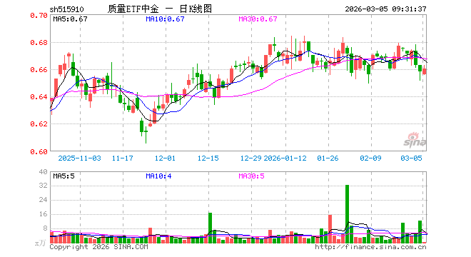 质量ETF中金(515910)业绩比较基准为MSCI中国A股国际质量指数收益率,管理人为中金基金管理有限公司,基金经理为耿帅军,成立(2021-01-21)以来回报为-34.67%,近一个月回报为-2.49%。