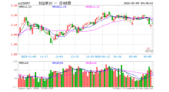 3月5日,创业板ETF华夏(159957)开盘涨0.72%,报2.111元。创业板ETF华夏(159957)重仓股方面,宁德时代开盘涨1.68%,中际旭创涨3.15%,新易盛涨4.22%,东方财富涨1.47%,阳光电源涨1.88%,胜宏科技涨2.26%,汇川技术涨5.02%,迈瑞医疗涨1.28%,温氏股份涨0.06%,天孚通信涨1.92%。