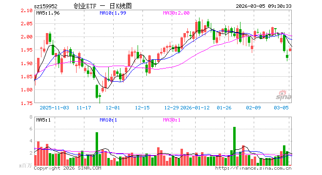 3月5日,创业板ETF广发(159952)开盘涨1.41%,报1.945元。创业板ETF广发(159952)重仓股方面,宁德时代开盘涨1.68%,中际旭创涨3.15%,新易盛涨4.22%,东方财富涨1.47%,阳光电源涨1.88%,胜宏科技涨2.26%,汇川技术涨5.02%,迈瑞医疗涨1.28%,温氏股份涨0.06%,天孚通信涨1.92%。