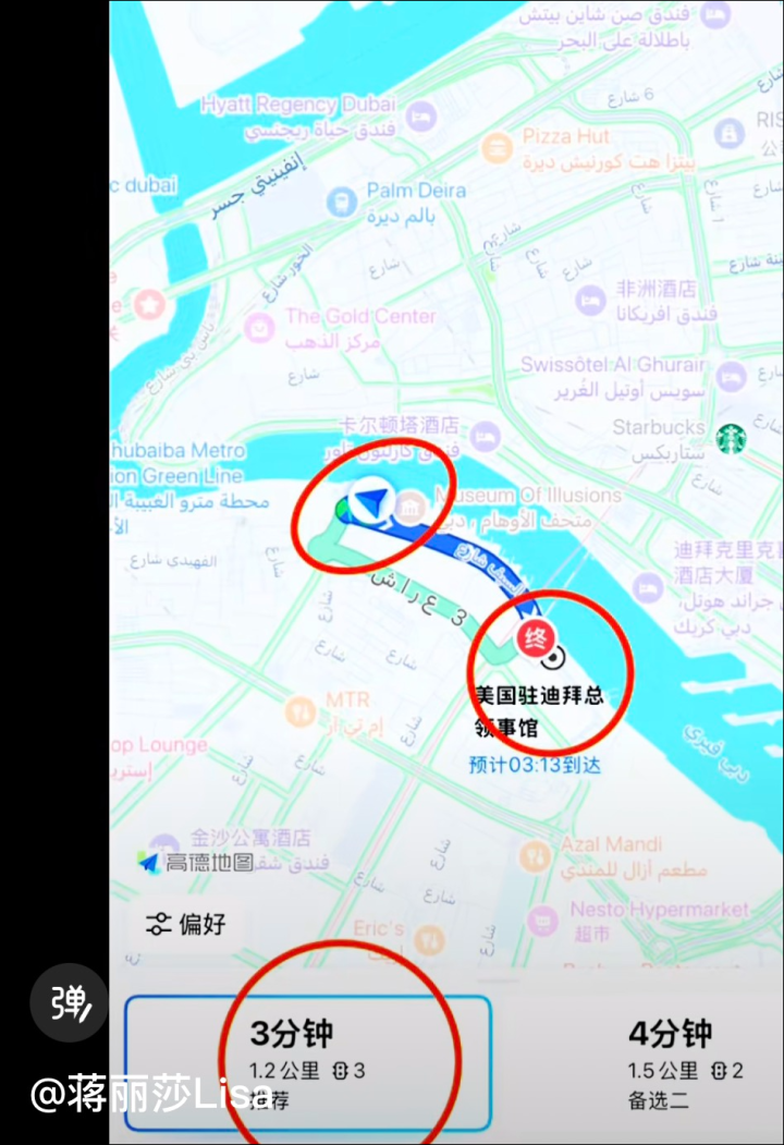 他们在迪拜下榻的酒店距离美国驻迪拜总领事馆3分钟1.2公里。迪拜美国领事馆附近曾在3日晚发生爆炸。