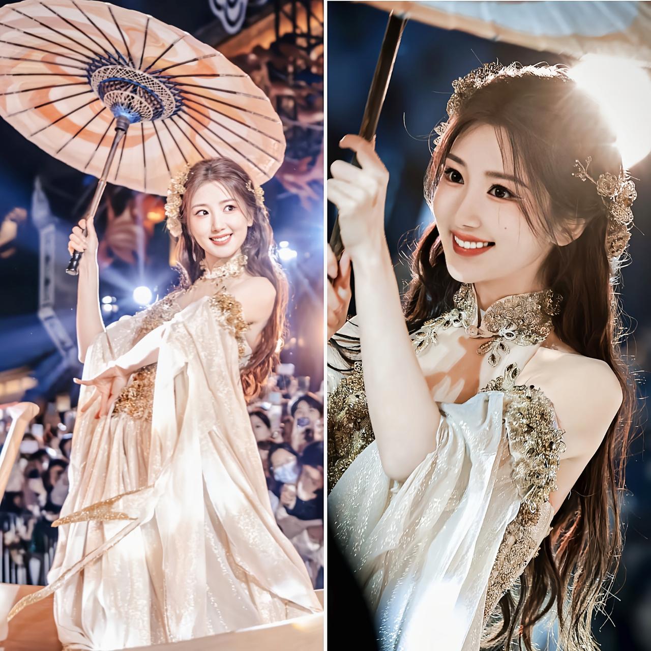 一觉睡醒, 是不是全网都知道了, 38岁的毛晓彤, 竟然没戏拍,跑去商演了! 前天元宵晚会,不少网友在福州三街七巷偶遇了毛晓彤,她穿着金色非遗古风纱裙,手上撑着一把油纸伞, 站在船头领舞,就跟仙女下凡了一样,美得我口水都要留下来了! 这辈子都没想到,电视里的明星居然在现实里被我看到了!难道影视寒冬已经这么厉害了吗! 毛晓彤可是有颜有演技的女明星呀,身上还没绯闻,就是不做主角,也肯定是“黄金配角”一类的呀!还是希望毛晓彤可以多多进组吧! 悄悄说一句,毛晓彤本人比剧里好看一万倍!对此,你们觉得毛晓彤的颜值可以打几分呢?